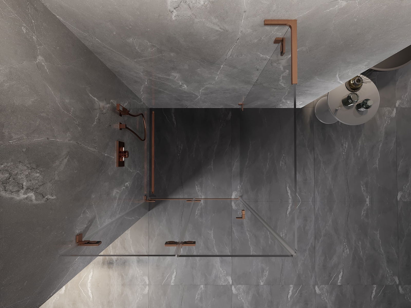 Mexen Lunar-F L skládací sprchová kabina levá 70 x 70 cm, transparentní, kartáčovaná měď - 836L-070-070-65-00-L
