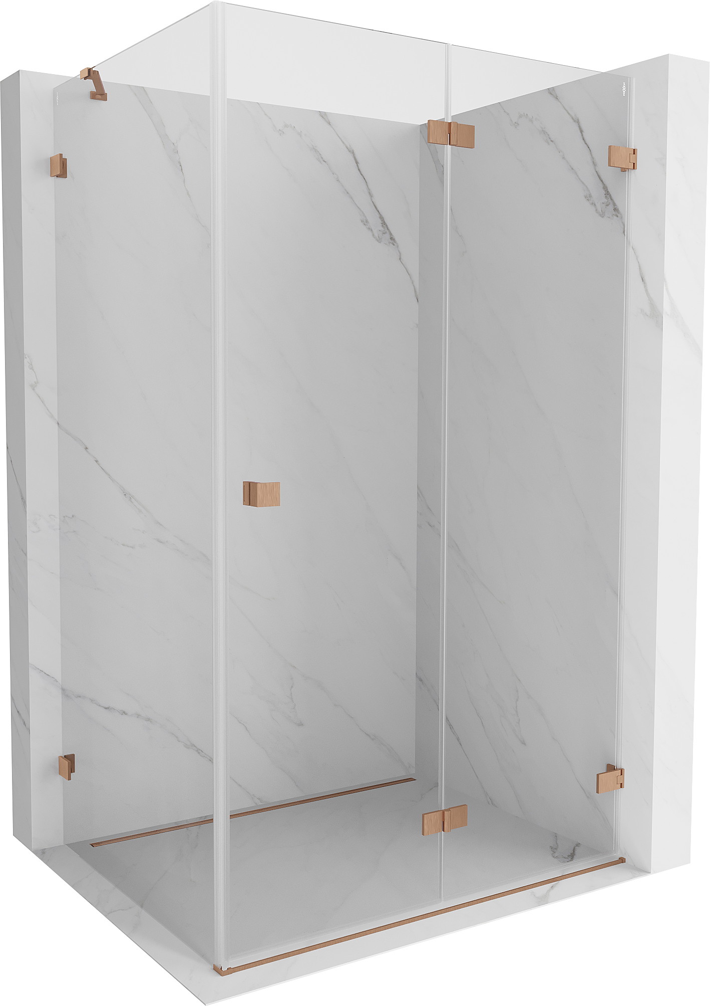 Mexen Lunar-F skládací sprchový kout pravý 85 x 80 cm, transparentní, kartáčovaná měď - 836-085-080-65-00-P