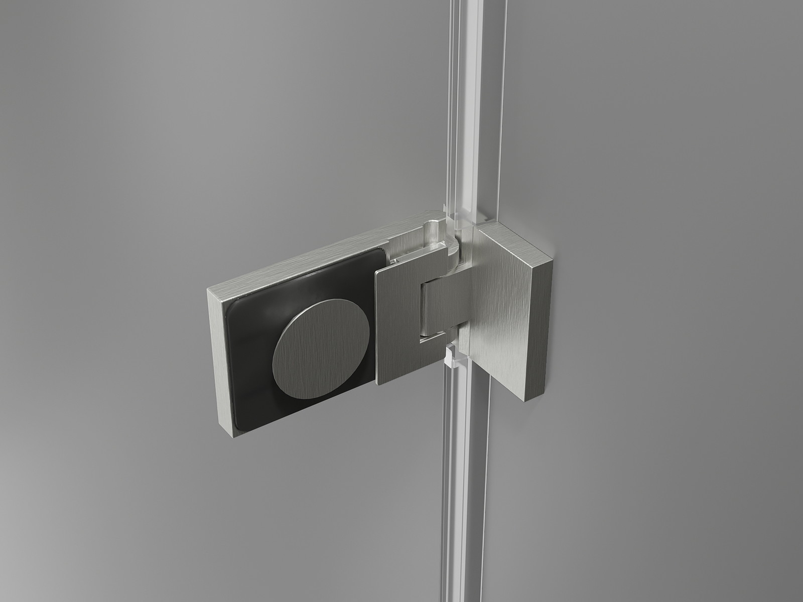 Mosazné spony a panty zapuštěné do skleněné tabule