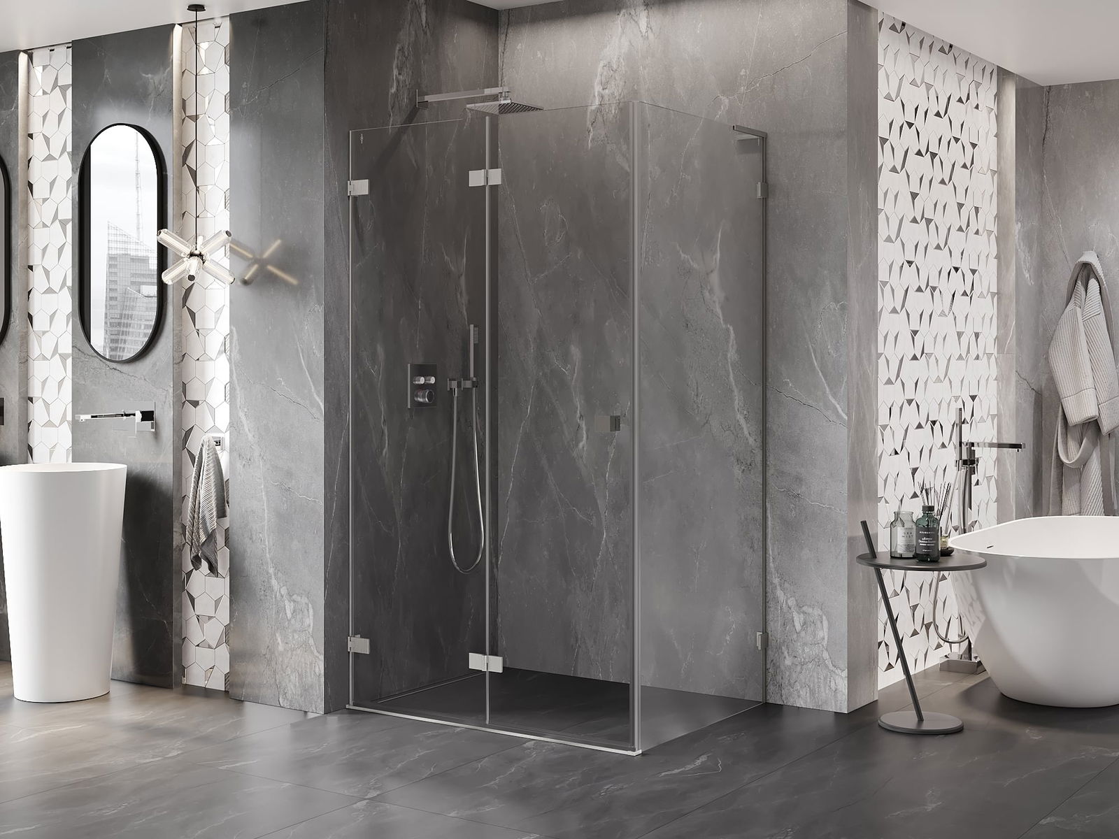 Možnost skládání dveří, jak dovnitř, tak ven, umožňuje získat více prostoru při nepoužívání sprchy. Je to ideální řešení pro menší koupelny, maximálně využívající dostupný prostor.