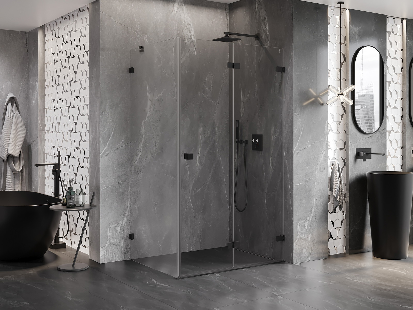 Možnost skládání dveří, jak dovnitř, tak ven, umožňuje získat více prostoru při nepoužívání sprchy. Je to ideální řešení pro menší koupelny, maximálně využívající dostupný prostor.
