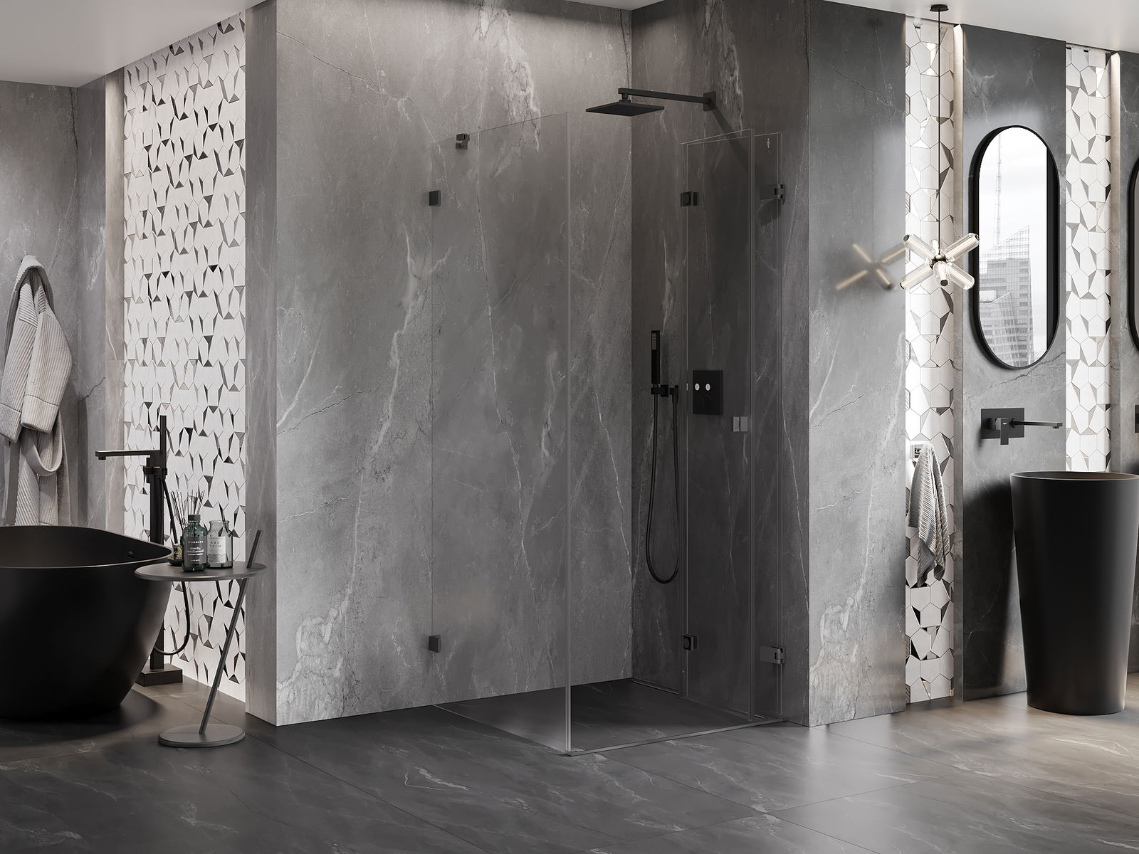 Možnost skládání dveří, jak dovnitř, tak ven, umožňuje získat více prostoru při nepoužívání sprchy. Je to ideální řešení pro menší koupelny, maximálně využívající dostupný prostor.
