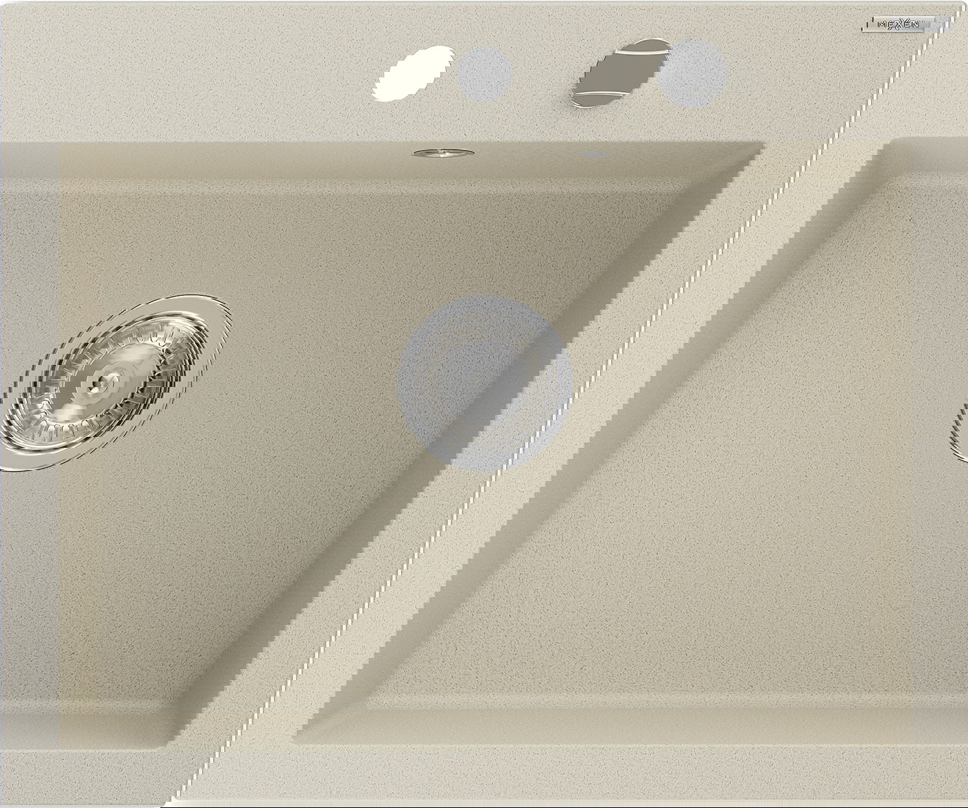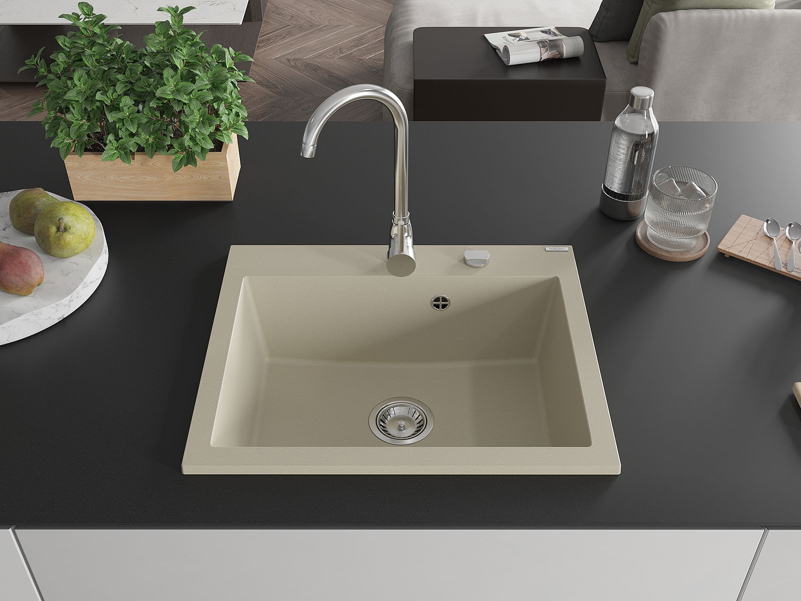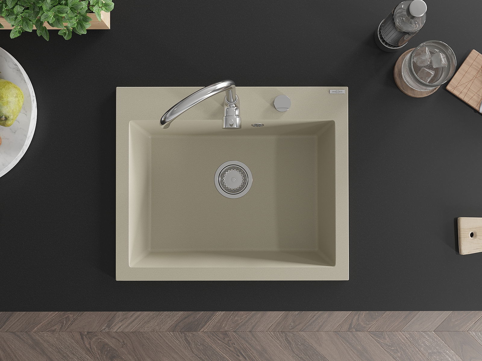 Mexen Elix granitový dřez 1-komorový 600 x 500 mm, béžový, sifon chrom - 6525601005-69