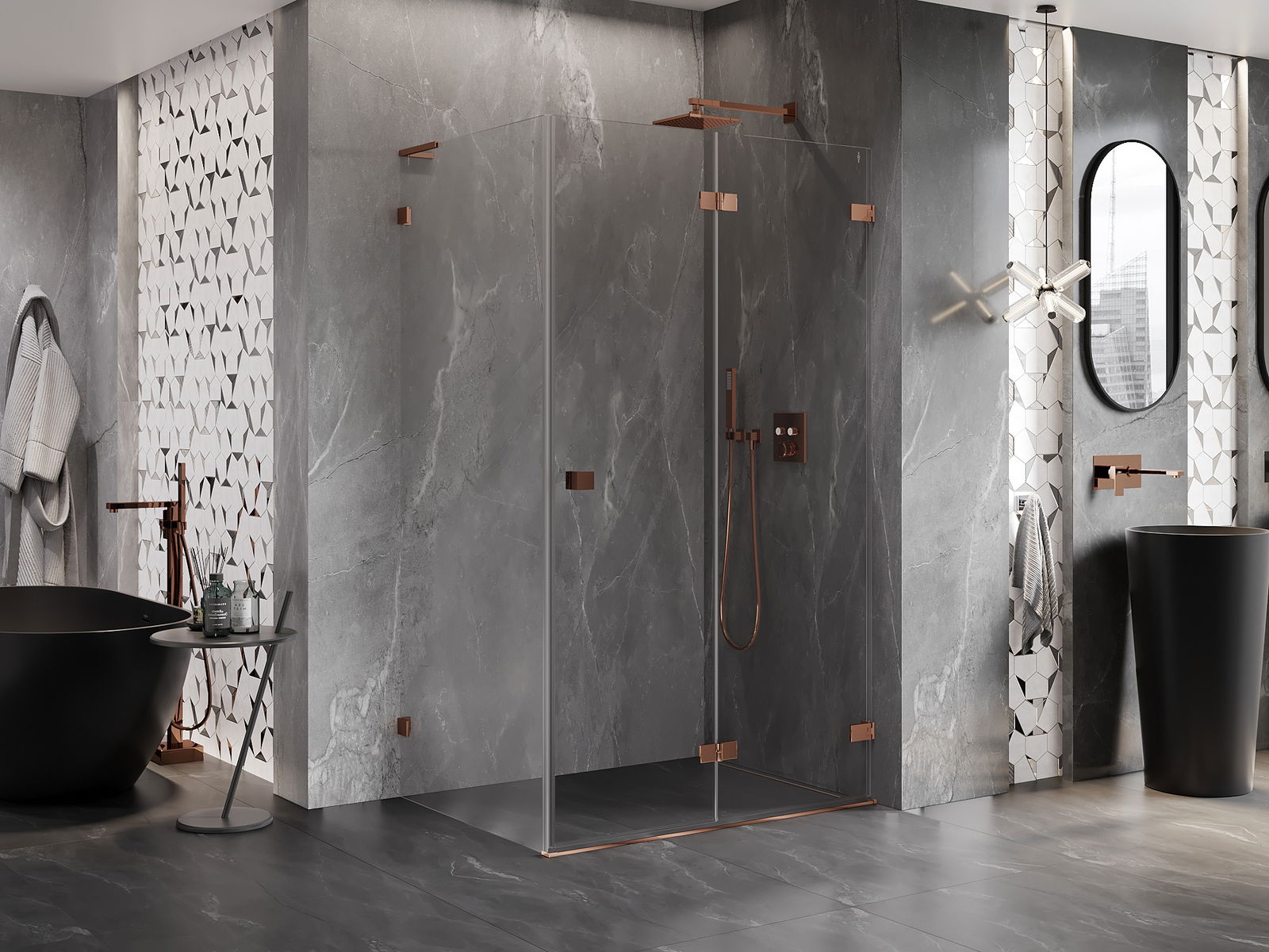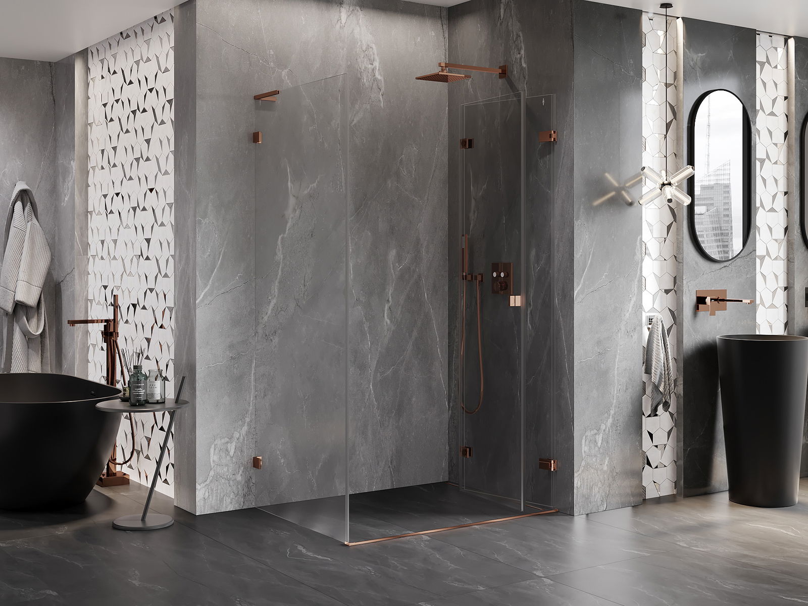 Spony a závěsy byly vyrobeny z velmi odolné mosazi a navíc vytvářejí zarovnanou plochu skla. Je to vynikající volba, která kombinuje eleganci, odolnost a moderní design. Díky těmto řešením získává sprcha na estetice a zároveň usnadňuje udržování čistoty.