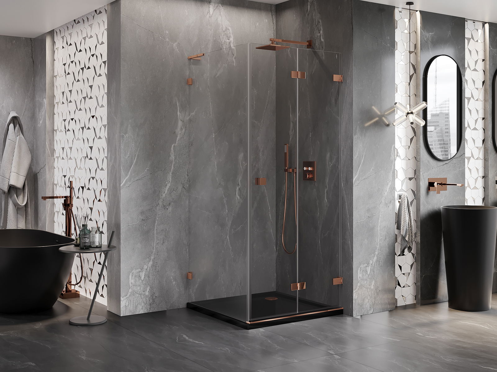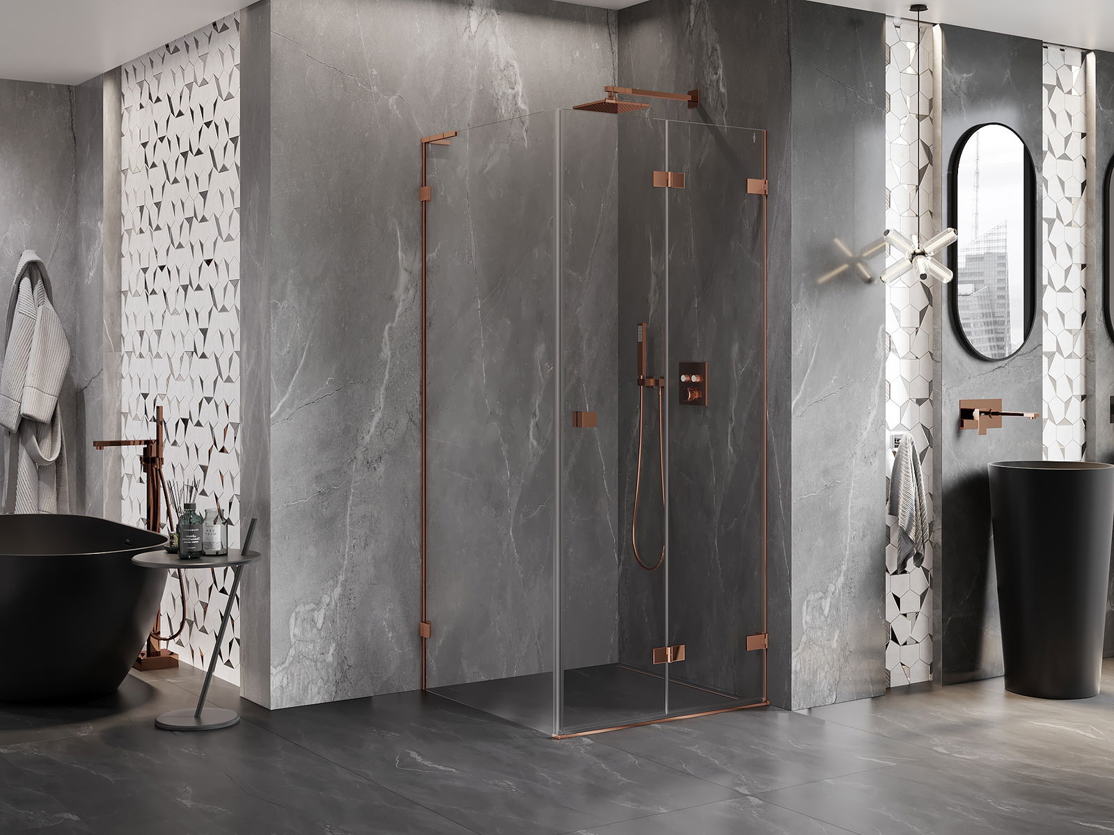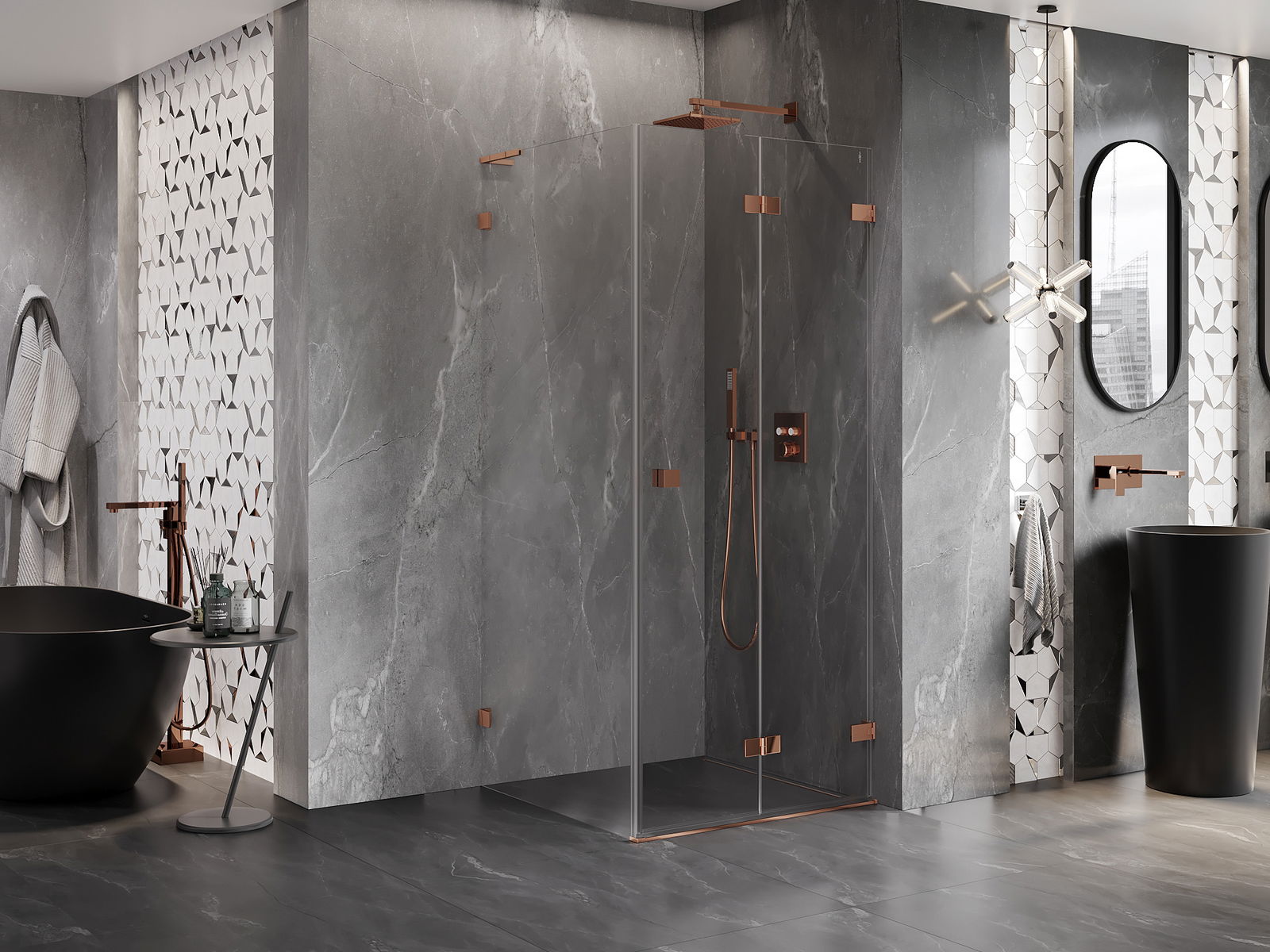 Možnost skládání dveří, jak dovnitř, tak ven, umožňuje získat více prostoru při nepoužívání sprchy. Je to ideální řešení pro menší koupelny, maximálně využívající dostupný prostor.