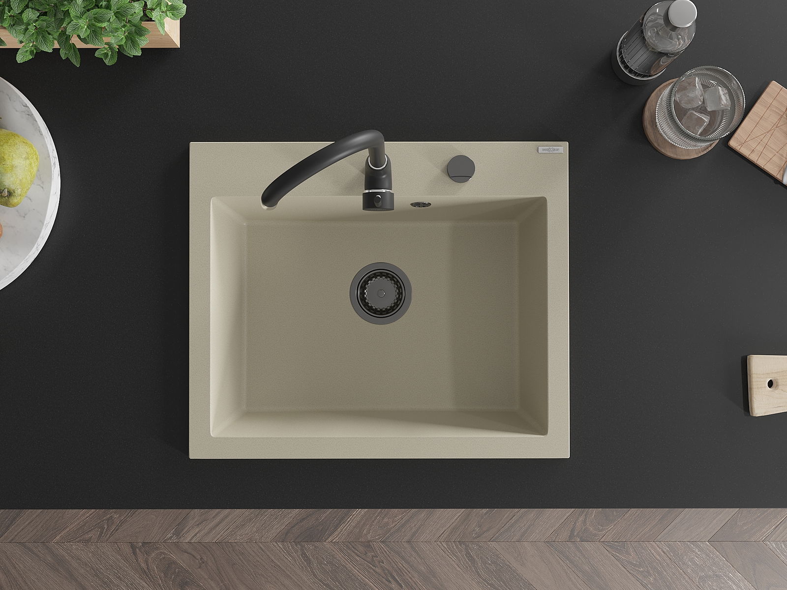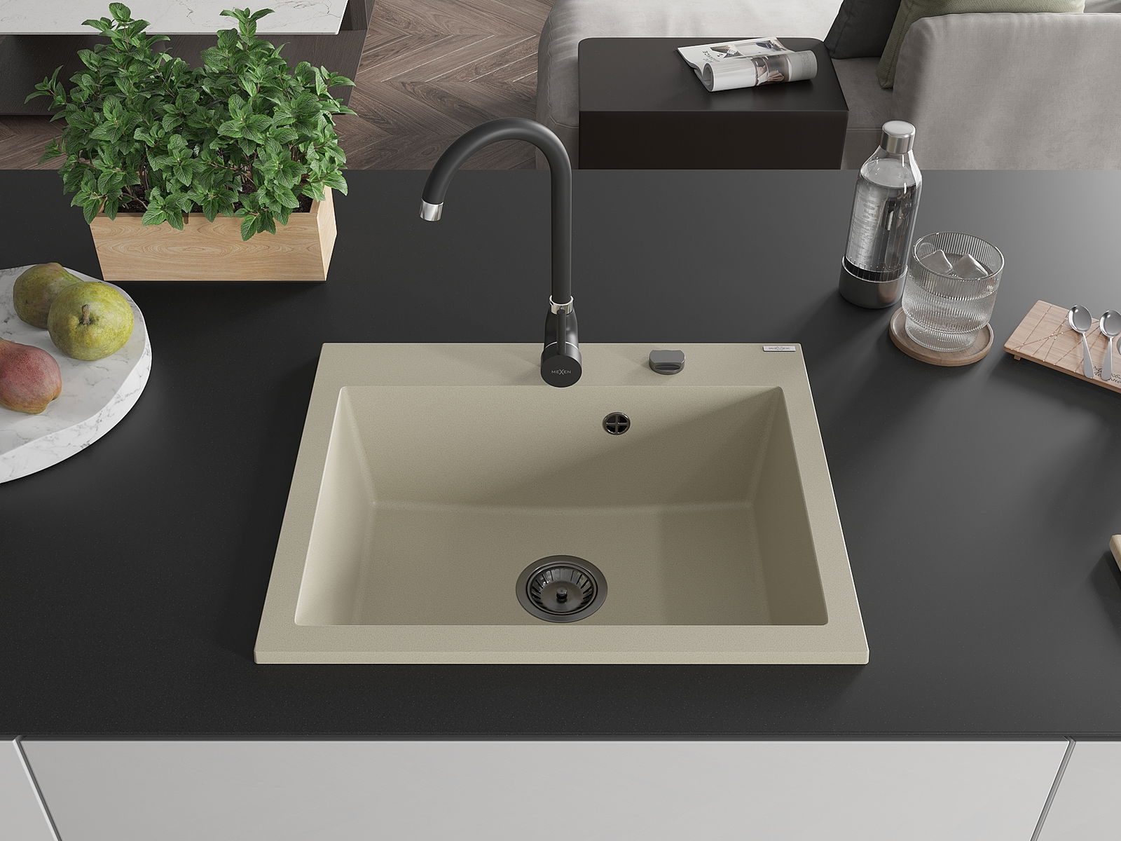 Mexen Elix granitový dřez 1-komorový 600 x 500 mm, béžový, černý sifon - 6525601005-69-B