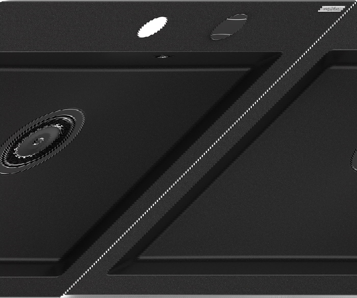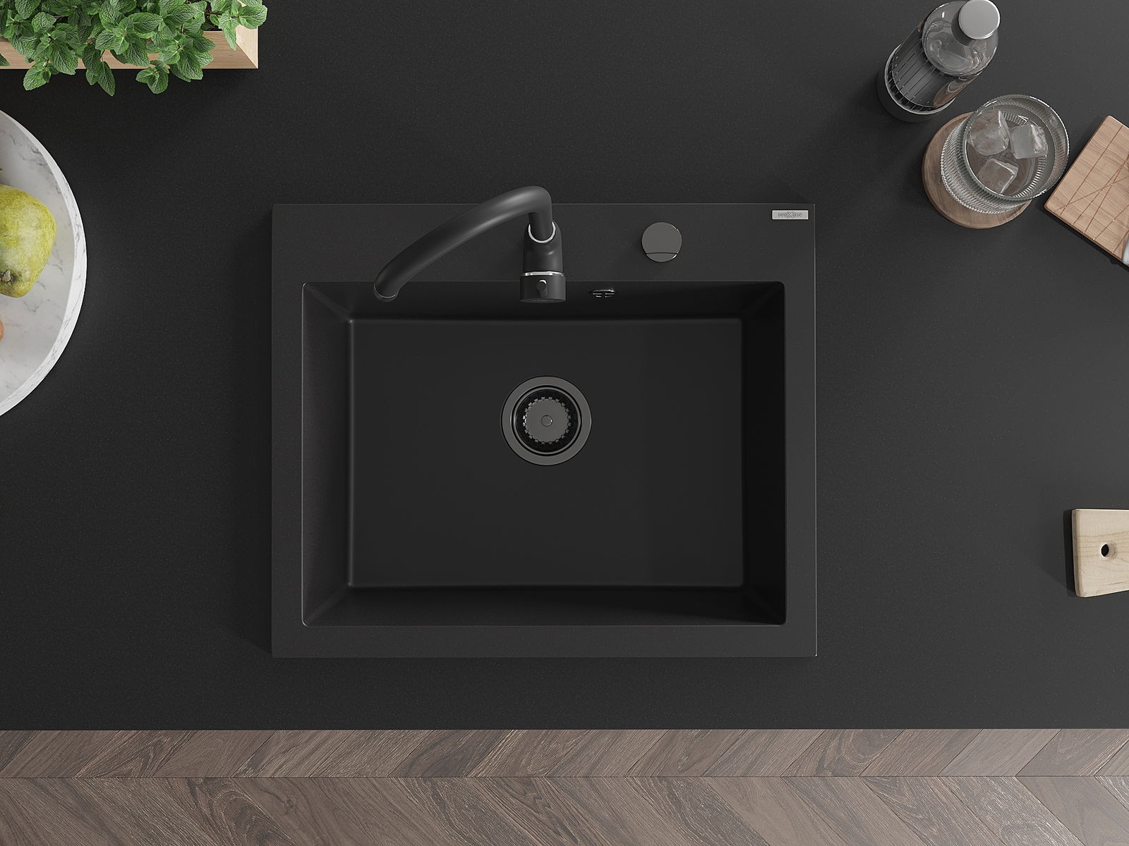 Mexen Elix granitový dřez 1-komorový 600 x 500 mm, černý, černý sifon - 6525601005-77-B