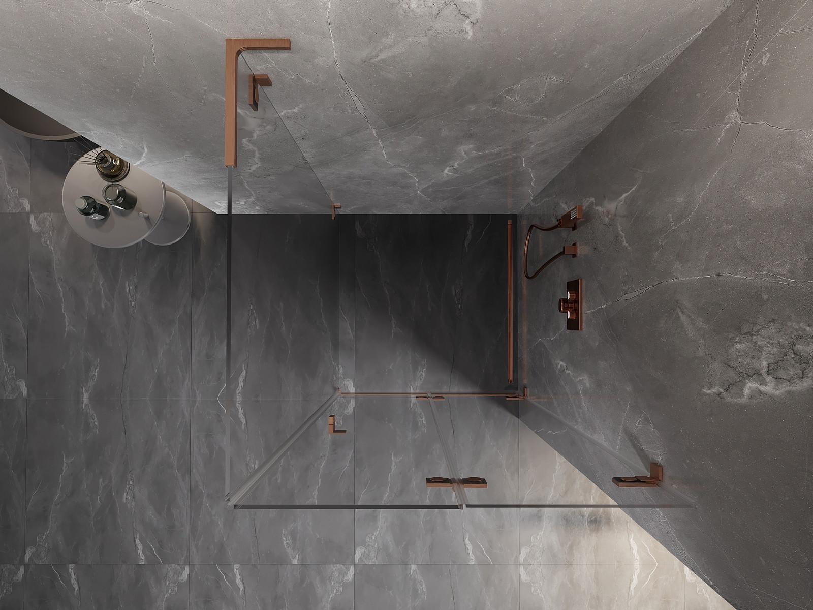 Mexen Lunar-F L skládací sprchový kout pravý 80 x 80 cm, transparentní, kartáčovaná měď - 836L-080-080-65-00-P