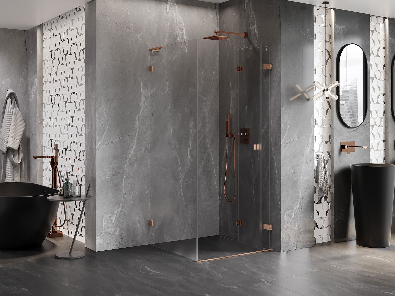 Spony a závěsy byly vyrobeny z velmi odolné mosazi a navíc vytvářejí zarovnanou plochu skla. Je to vynikající volba, která kombinuje eleganci, odolnost a moderní design. Díky těmto řešením získává sprcha na estetice a zároveň usnadňuje udržování čistoty.