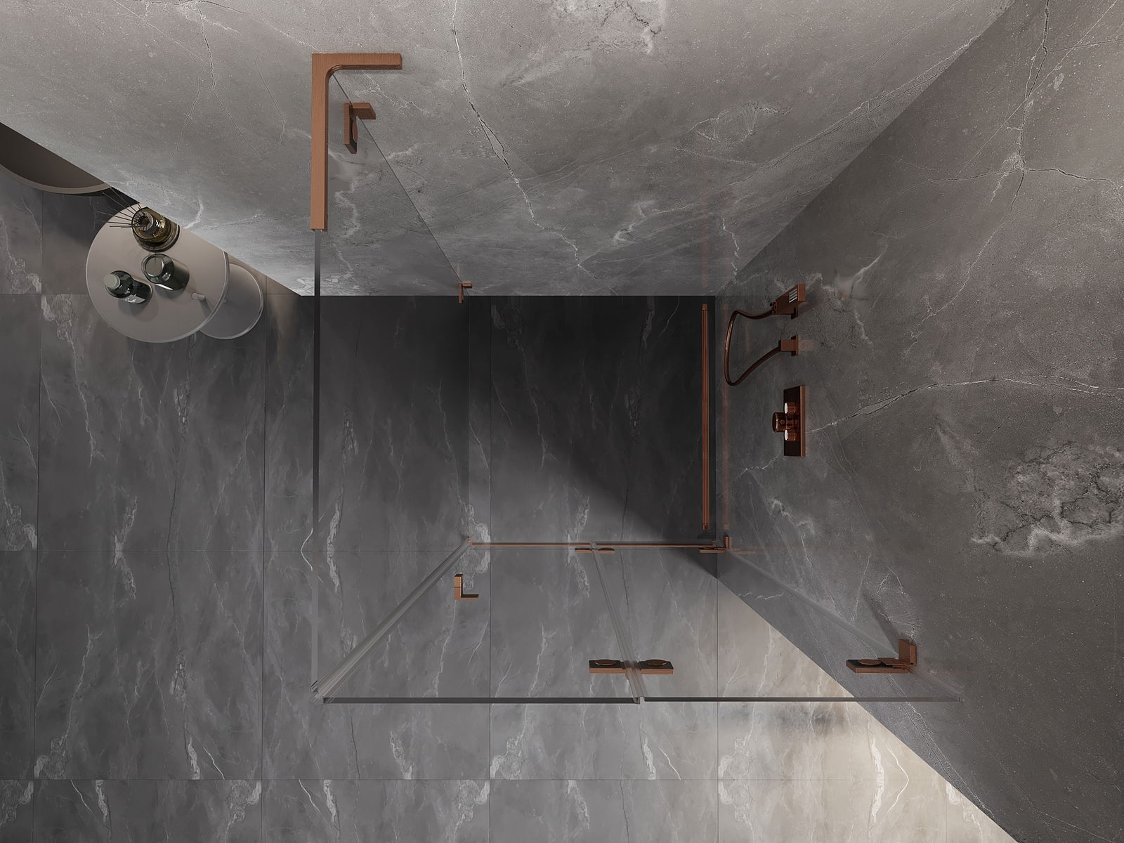 Mexen Lunar-F L sprchová kabina skládací pravá 90 x 90 cm, transparentní, kartáčovaná měď - 836L-090-090-65-00-P