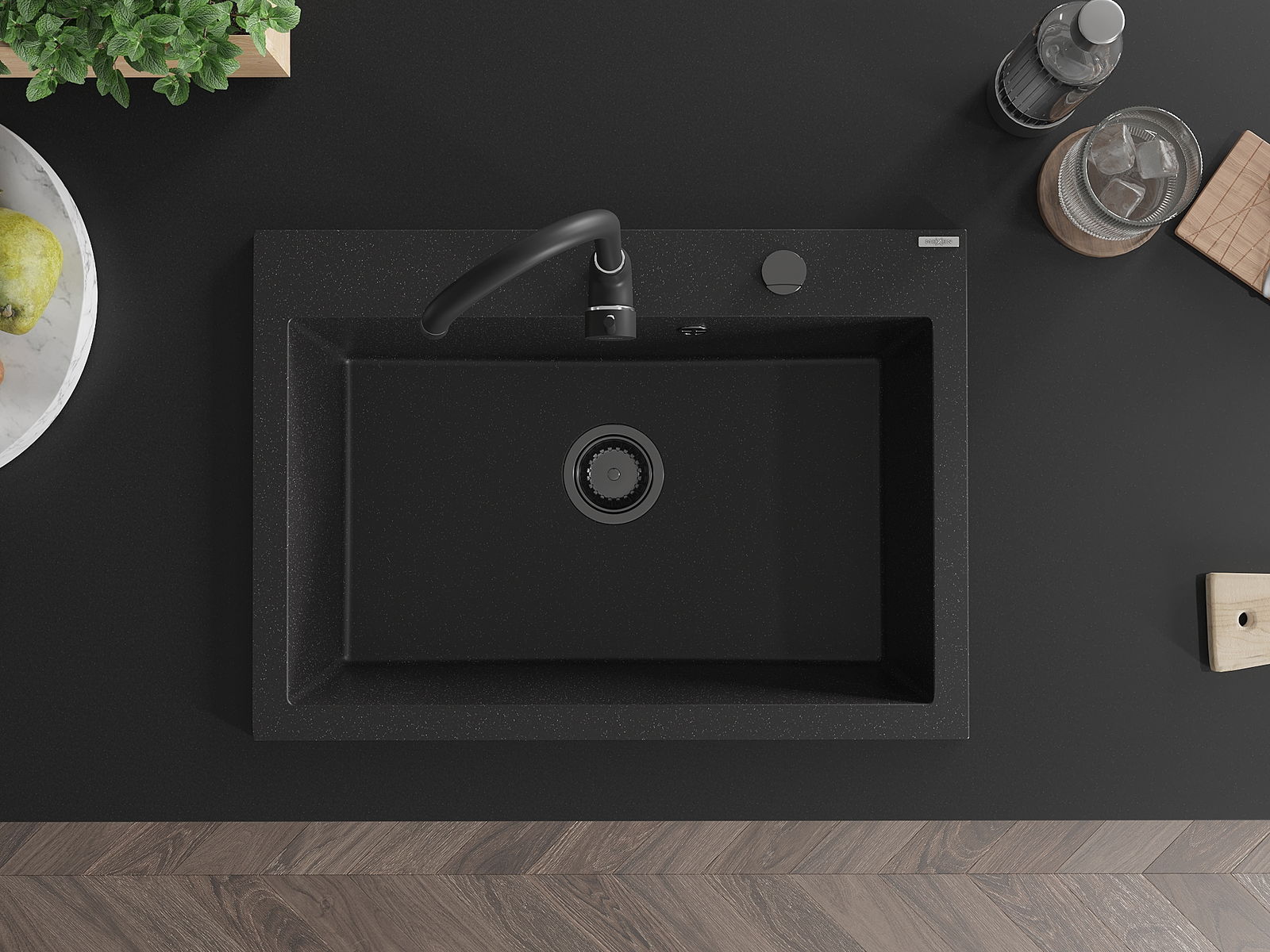 Dřez má předfrézovaný otvor o průměru 35 mm k samostatnému proražení. Může být použit například k montáži dávkovače na tekutinu, který eliminuje přítomnost plastových lahví v kuchyni a dodá jí elegantní finiš.