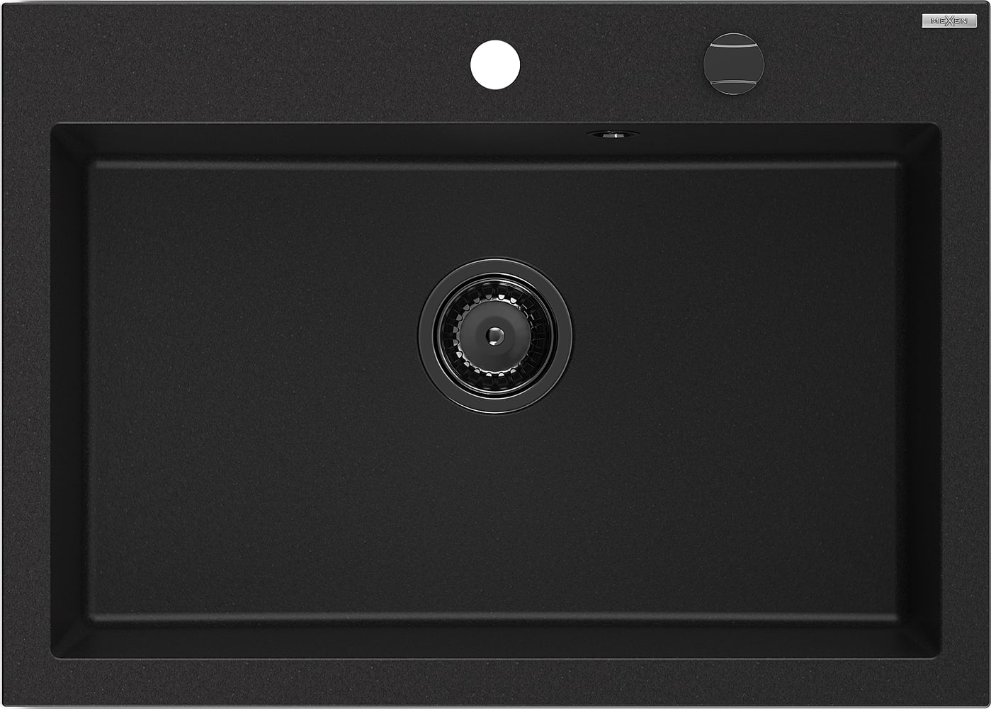Mexen Elix granitový dřez 1-komorový 700 x 500 mm, černý, černý sifon - 6526701005-77-B