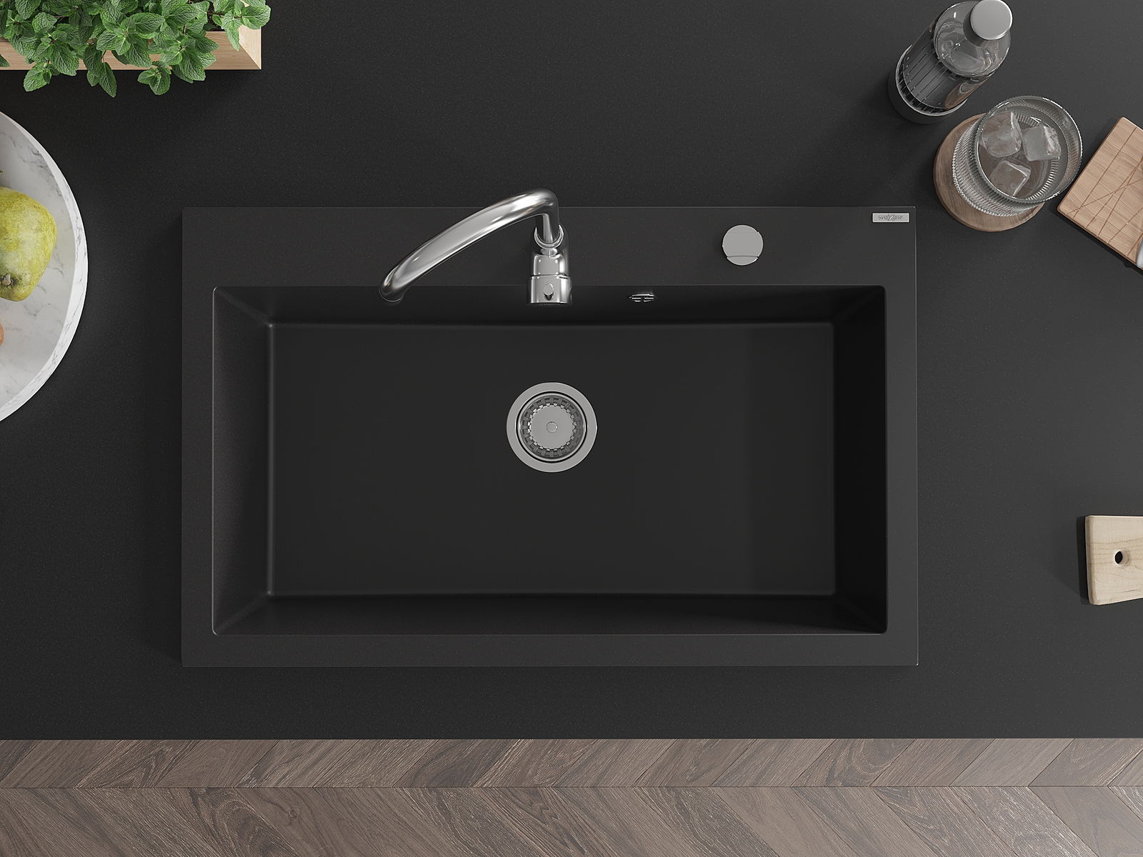 Mexen Elix granitový dřez s jednou komorou 800 x 500 mm, černý, sifon chrom - 6527801005-77