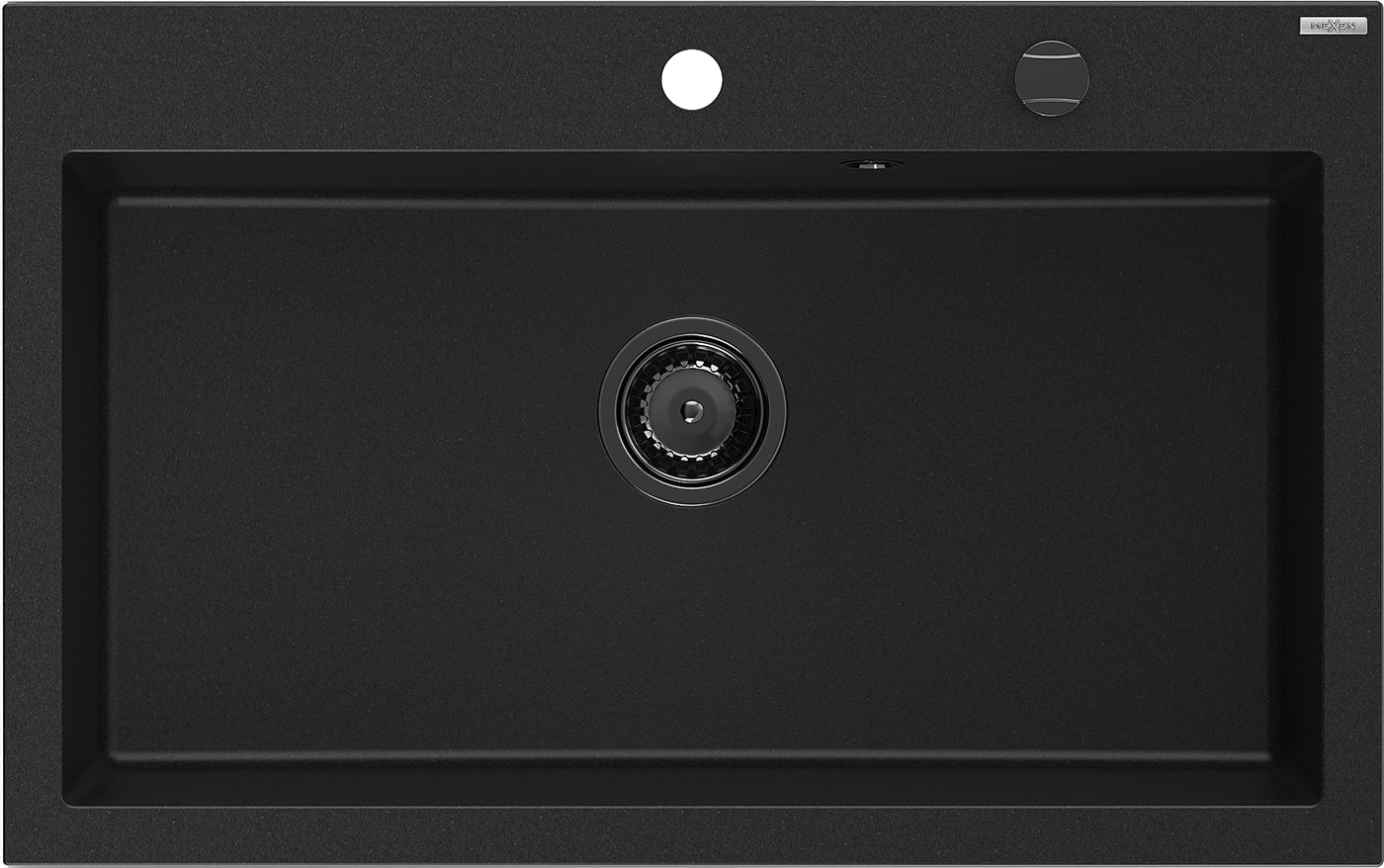• Mexen Elix granitový kuchyňský dřez 1-komorový 800 x 500 mm, černý, sifon zlatý - 6527801005-77-B