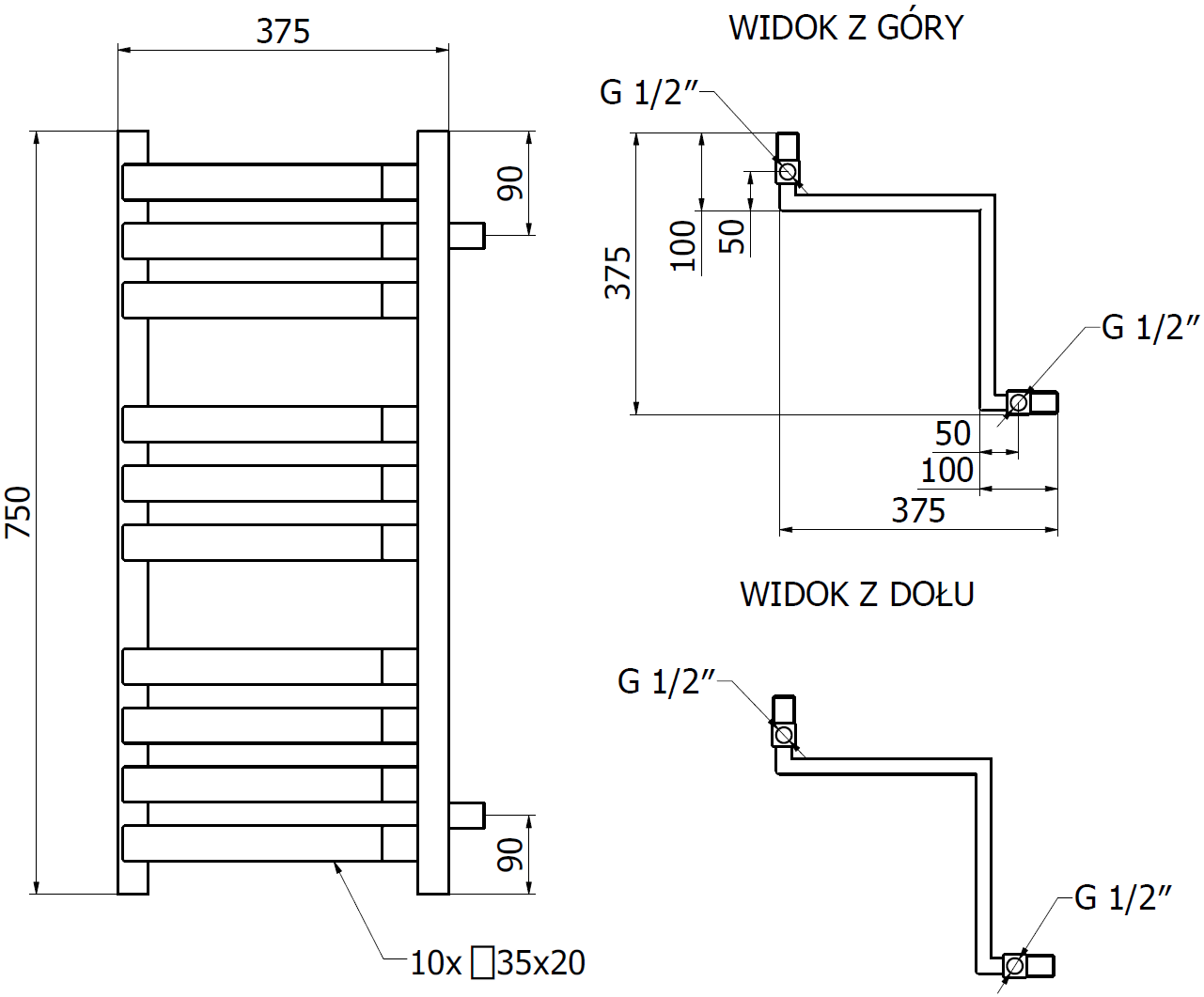 - 4xG ½″ nahoře a dole na pravé nebo levé straně