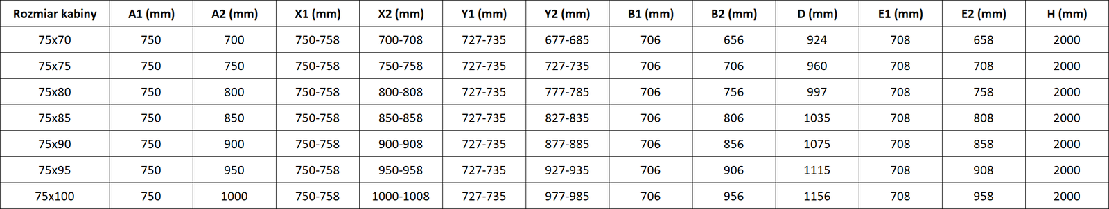 Sprchové kouty, dveře a stěny jsou standardně přizpůsobeny pro montáž na sprchové vaničky určitých rozměrů. Právě tyto rozměry jsou uvedeny v názvu nebo popisu výrobku. Je však třeba mít na paměti, že skutečné rozměry prvků se mohou mírně lišit od nominálních hodnot. V případě plánované instalace přímo na podlahu se doporučuje pečlivě zkontrolovat vnější rozměry a uspořádání prvků podle technického výkresu.