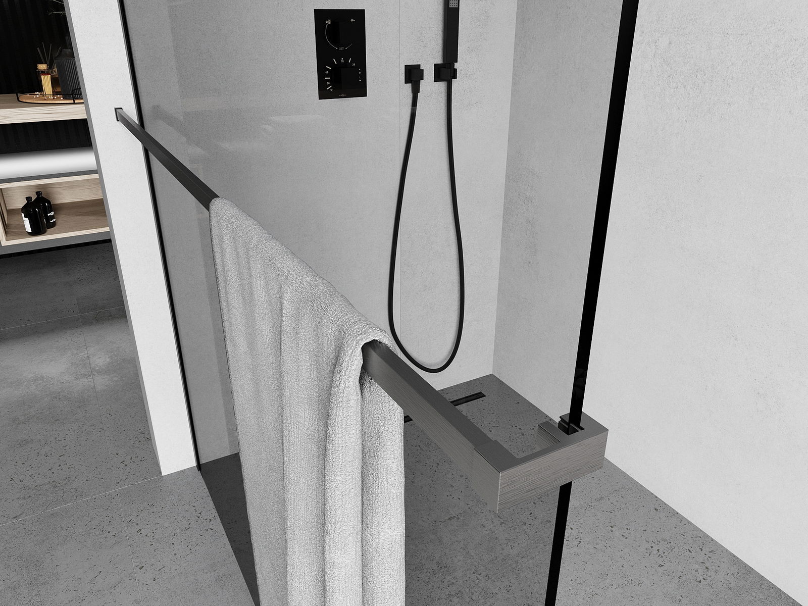 Mexen reling na ručníky do sprchové stěny, gun šedá kartáčovaná - 800-06-66