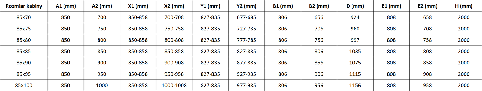 Sprchové kouty, dveře a stěny jsou standardně přizpůsobeny pro montáž na sprchové vaničky určitých rozměrů. Právě tyto rozměry jsou uvedeny v názvu nebo popisu výrobku. Je však třeba mít na paměti, že skutečné rozměry prvků se mohou mírně lišit od nominálních hodnot. V případě plánované instalace přímo na podlahu se doporučuje pečlivě zkontrolovat vnější rozměry a uspořádání prvků podle technického výkresu.