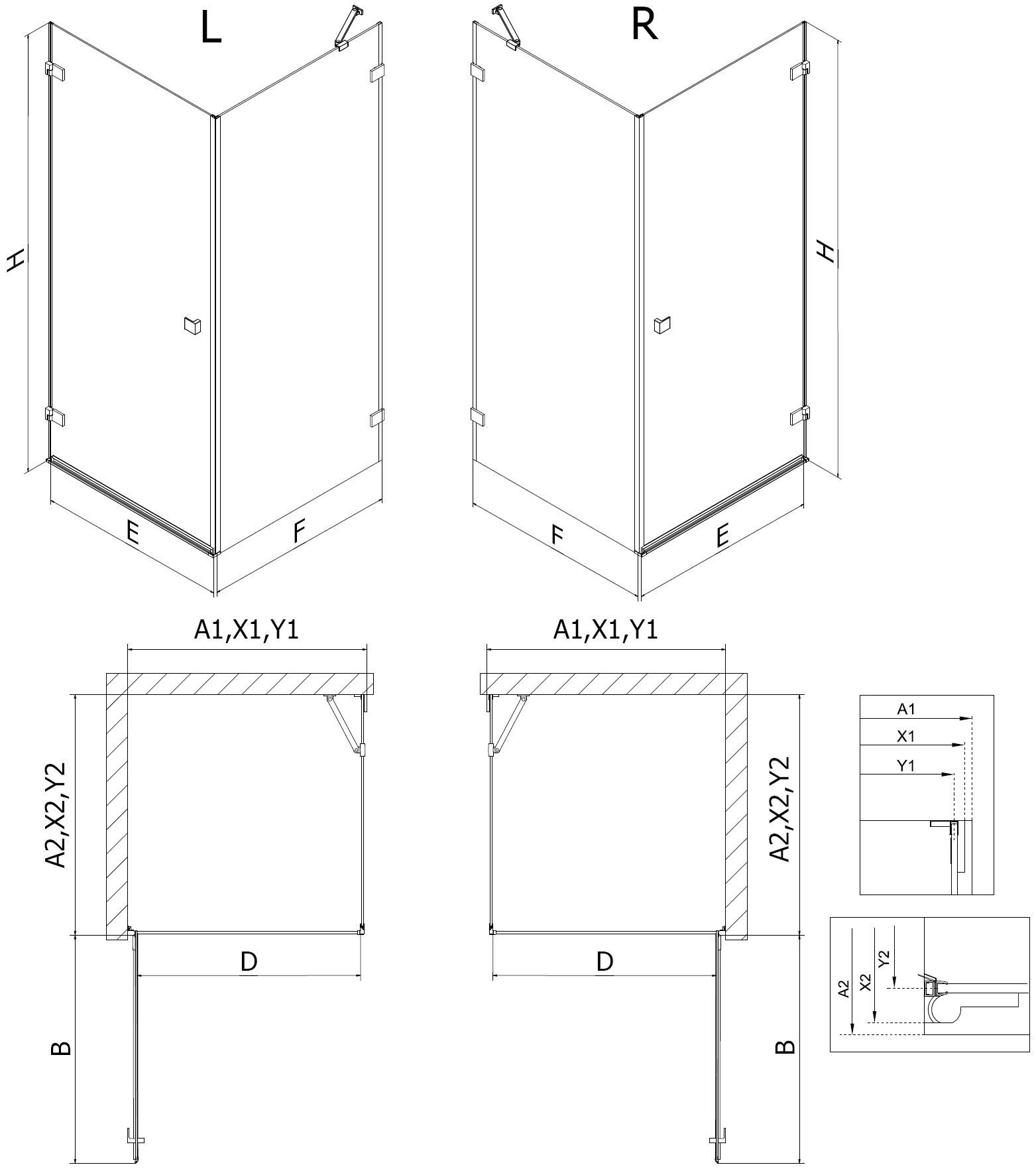 Sprchové kouty, dveře a stěny jsou standardně přizpůsobeny pro montáž na sprchové vaničky určitých rozměrů. Právě tyto rozměry jsou uvedeny v názvu nebo popisu výrobku. Je však třeba mít na paměti, že skutečné rozměry prvků se mohou mírně lišit od nominálních hodnot. V případě plánované instalace přímo na podlahu se doporučuje pečlivě zkontrolovat vnější rozměry a uspořádání prvků podle technického výkresu.