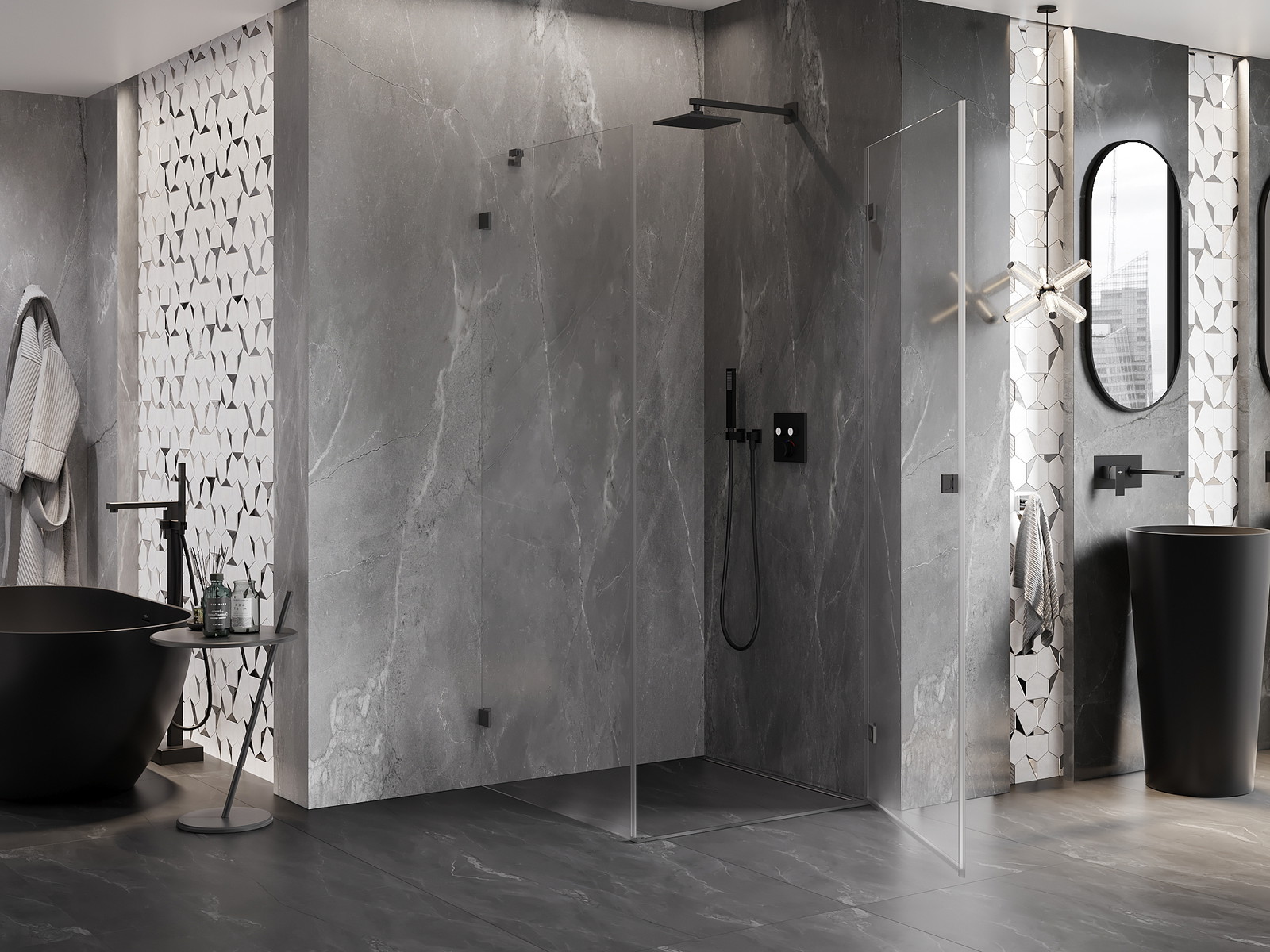Praktická a pohodlná rukojeť je vyrobena z odolného a trvanlivého kovu. Moderní tvar ve spojení s povrchovou úpravou, která ladí s barvou profilů, dodává celku moderní a stylový vzhled, zdůrazňující estetiku každé koupelny.