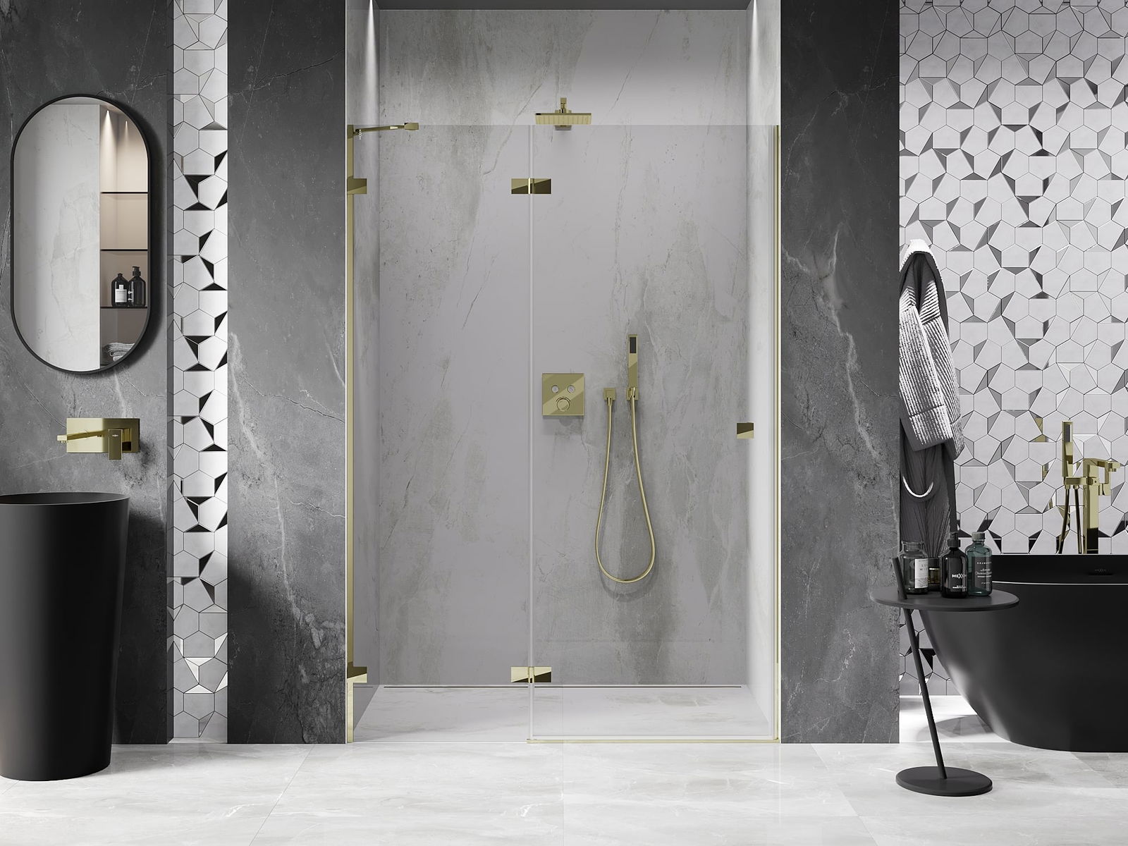 Mexen Lunar sprchové dveře posuvné levé 130 cm, průhledné, zlaté - 834-130-000-50-00-L