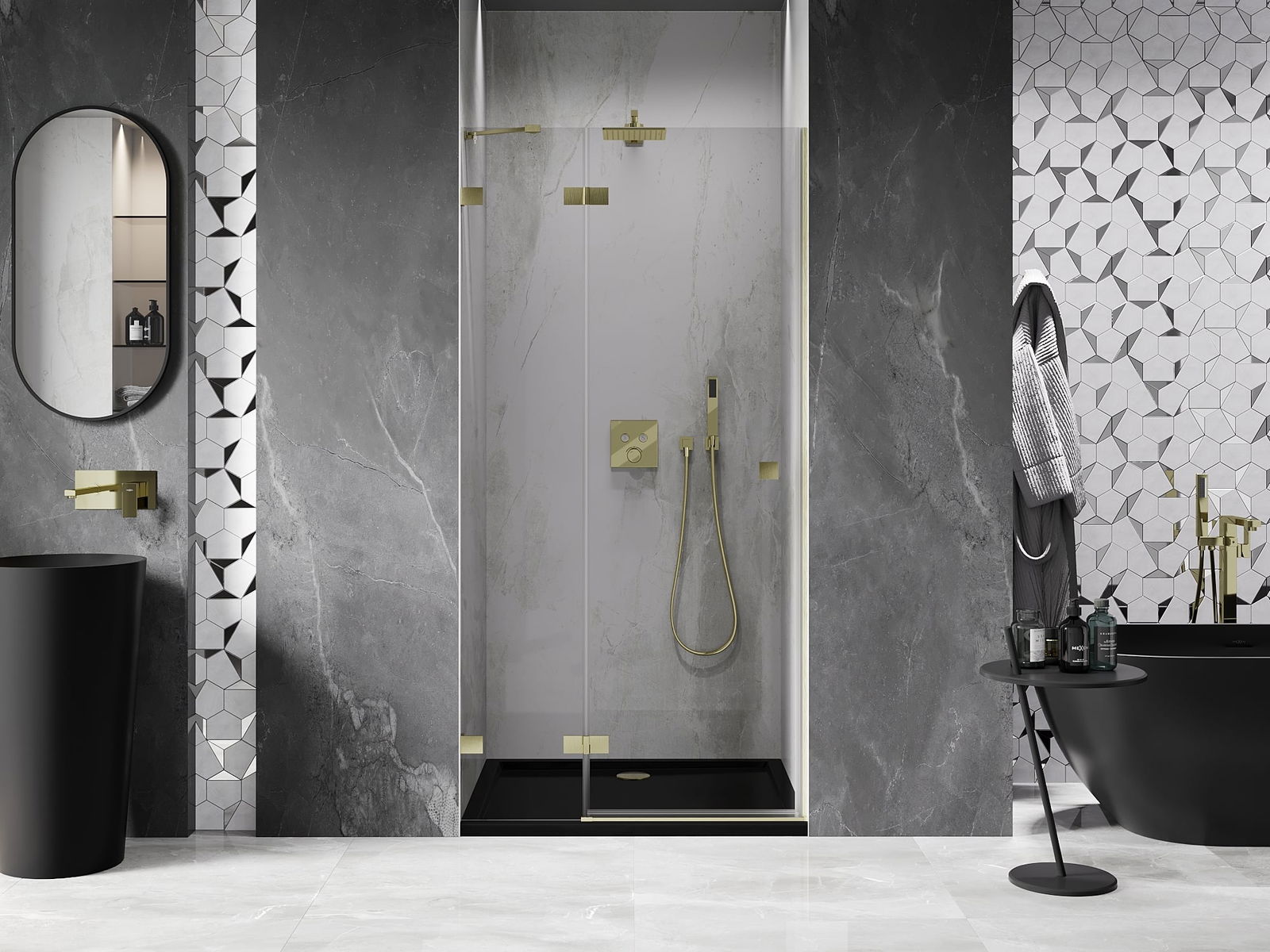 Mexen Lunar sprchové dveře levé otevírání 95 cm, transparentní, zlaté kartáčované - 834-095-000-55-00-L