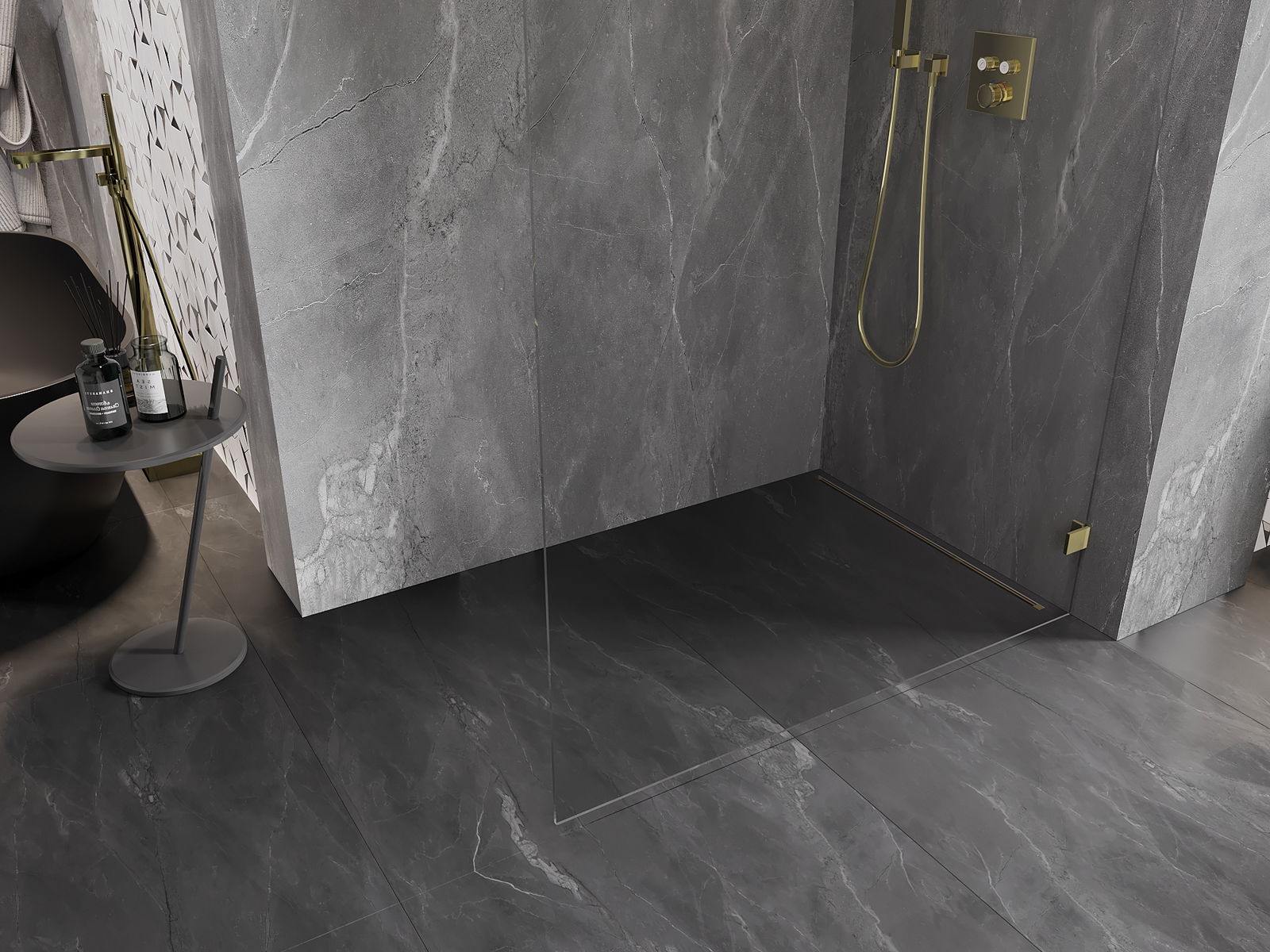 Mexen Lunar L sprchová stěna Walk-in pravá 70 x 200 cm, transparentní 8 mm, zlatá - 830L-070-000-50-00-P