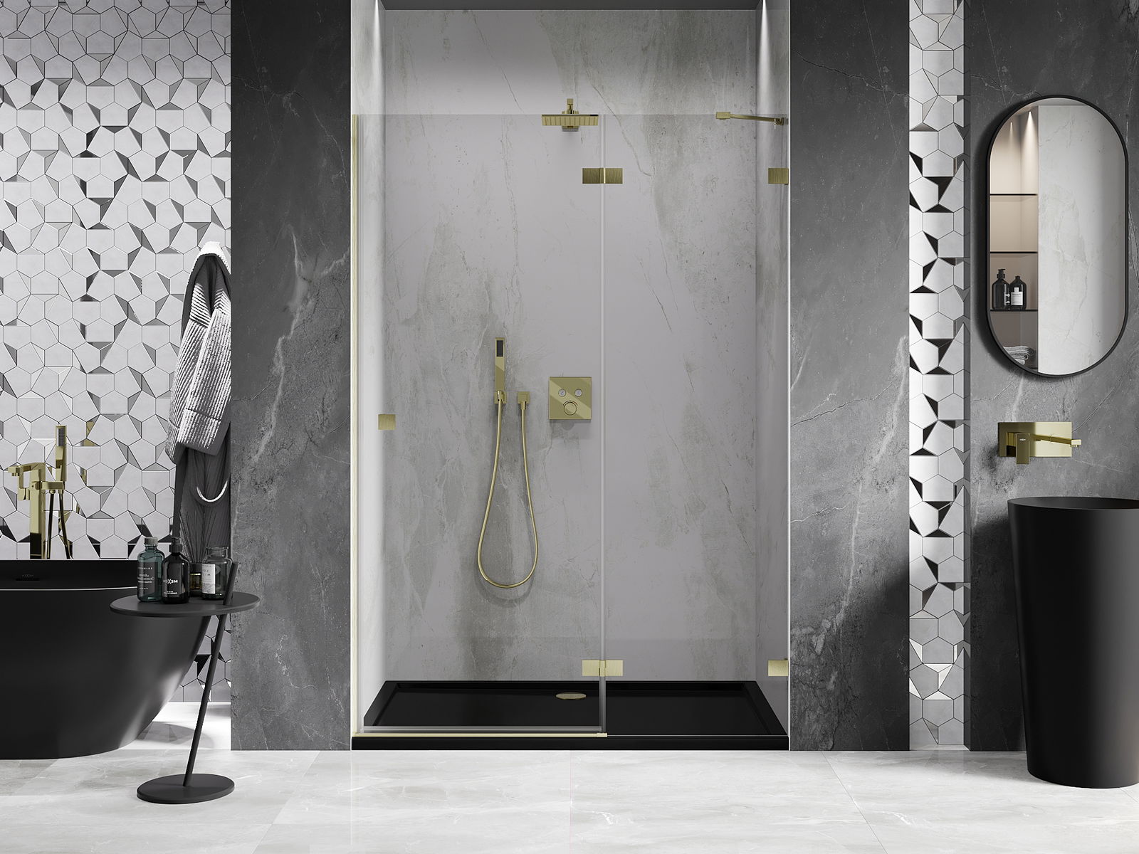 Mexen Lunar sprchové dveře otočné pravé 130 cm, transparentní, zlaté kartáčované - 834-130-000-55-00-P