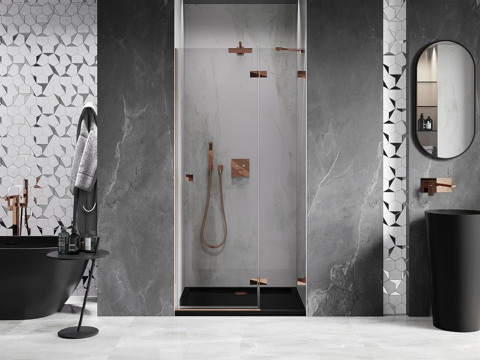 Mexen Lunar sprchové dveře výklopné pravé 115 cm, transparentní, růžové zlato - 834-115-000-60-00-P