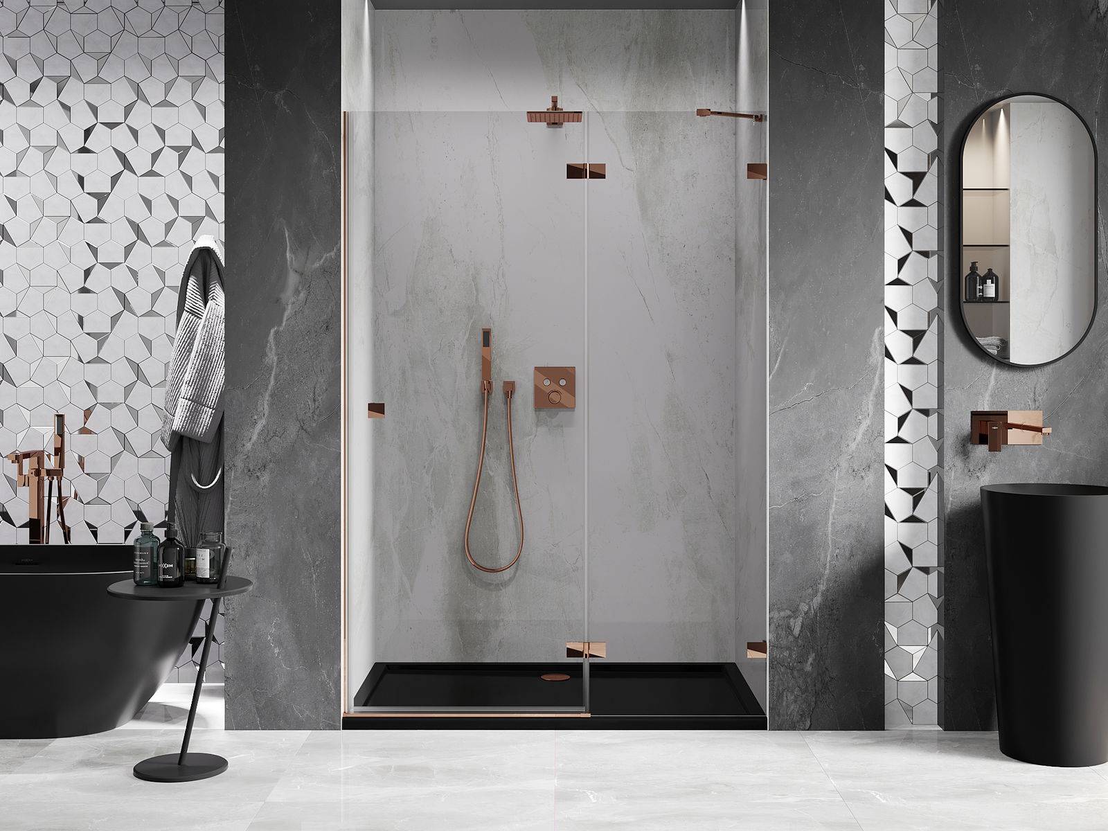 Mexen Lunar otočné sprchové dveře pravé 135 cm, transparentní, růžové zlato - 834-135-000-60-00-P