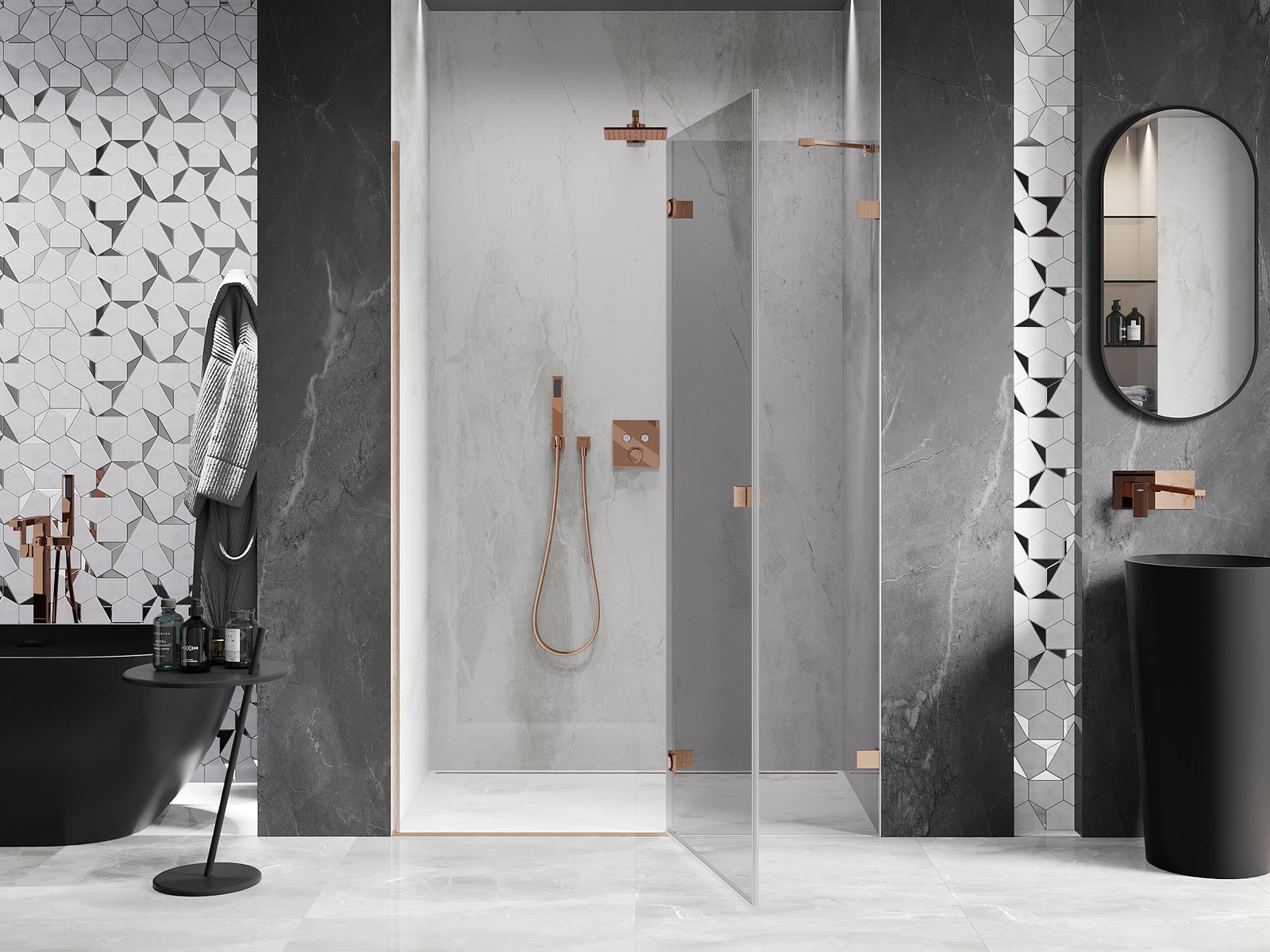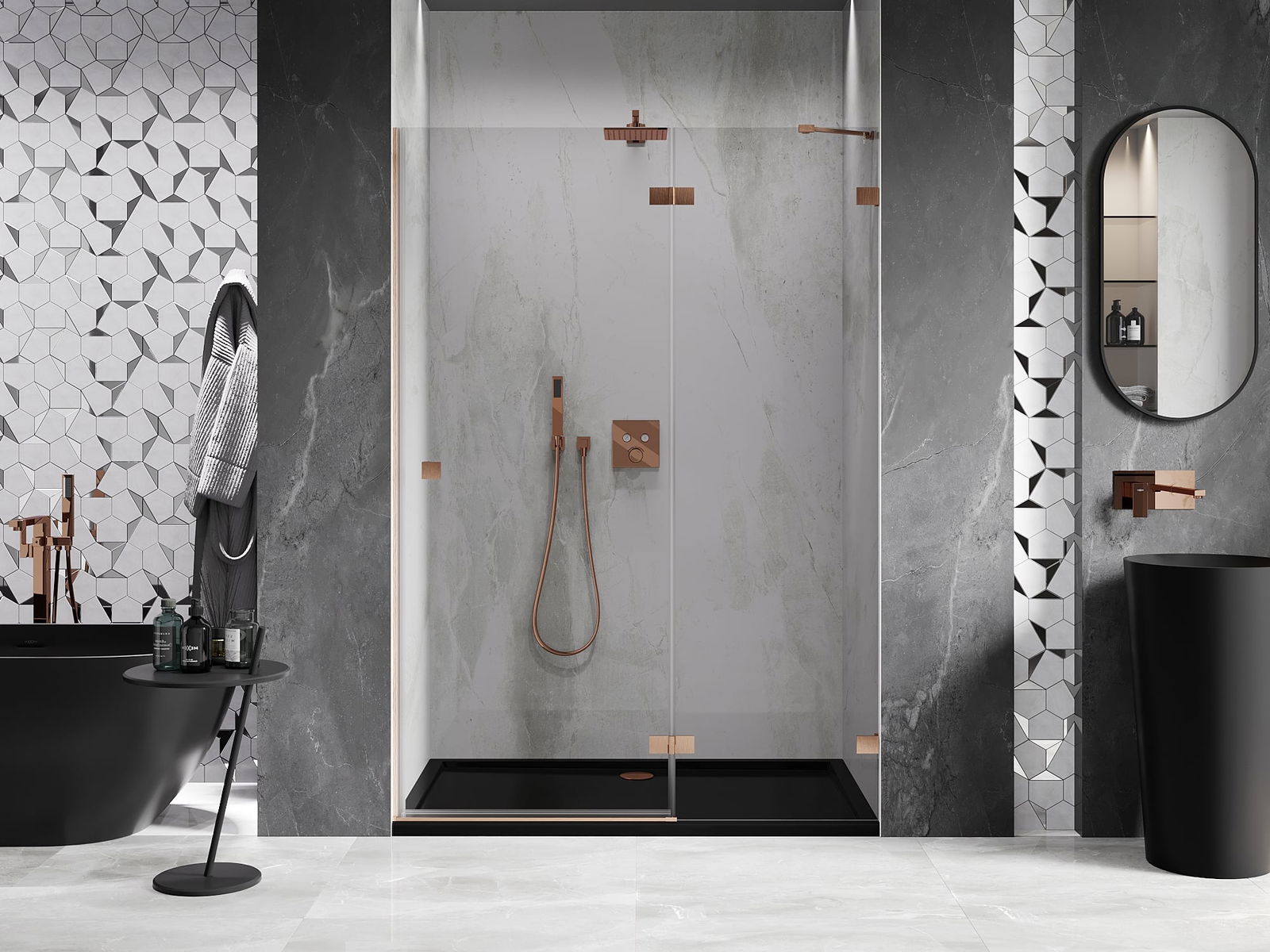 Mexen Lunar sprchové dveře otočné, pravé, 130 cm, transparentní, kartáčovaná měď - 834-130-000-65-00-P
