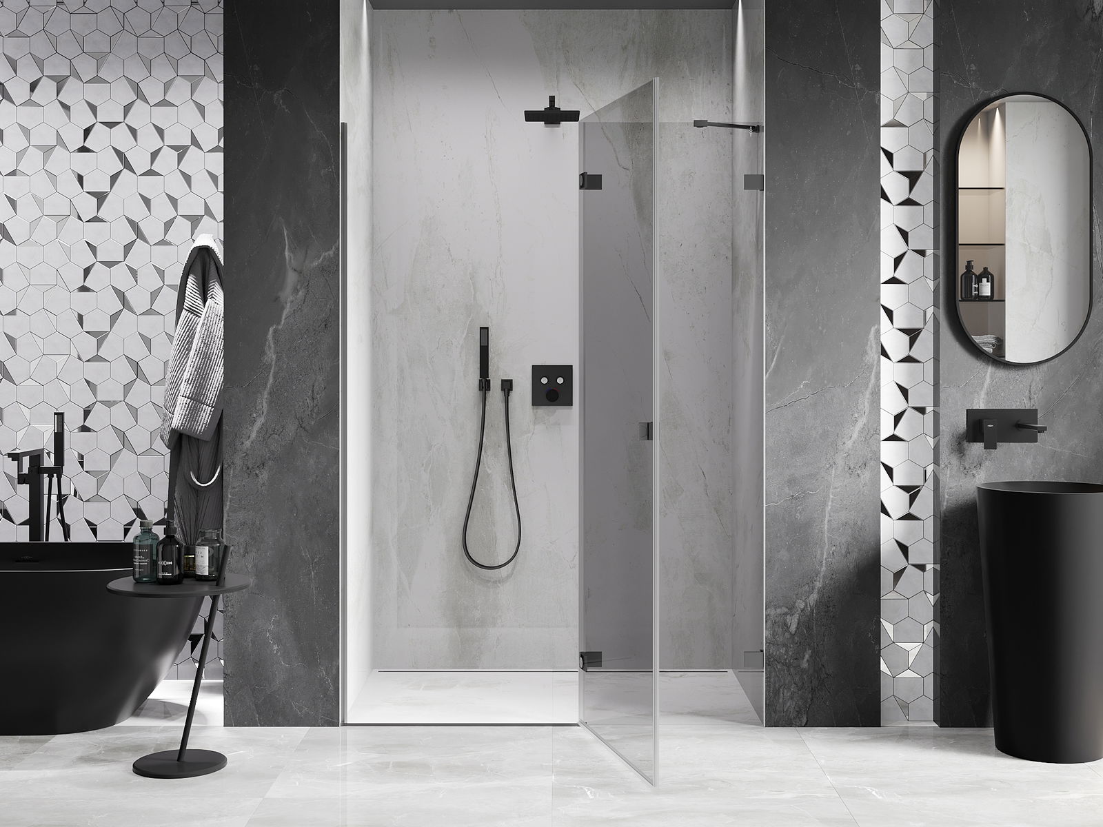 Otevírací dveře umožňují maximální svobodu při používání. Mají pevné panty vyrobené z odolného materiálu, které se snadno čistí a umožňují snadný přístup do interiéru kabiny.