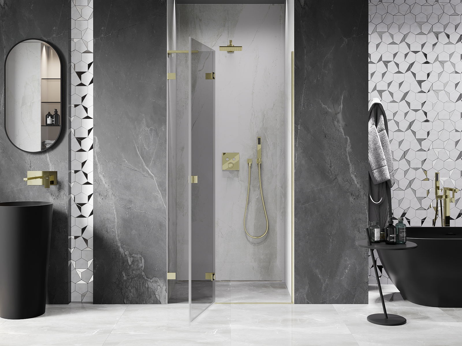 Mexen Lunar L levé sprchové dveře otevírací 85 cm, transparentní, zlaté kartáčované - 834L-085-000-55-00-L