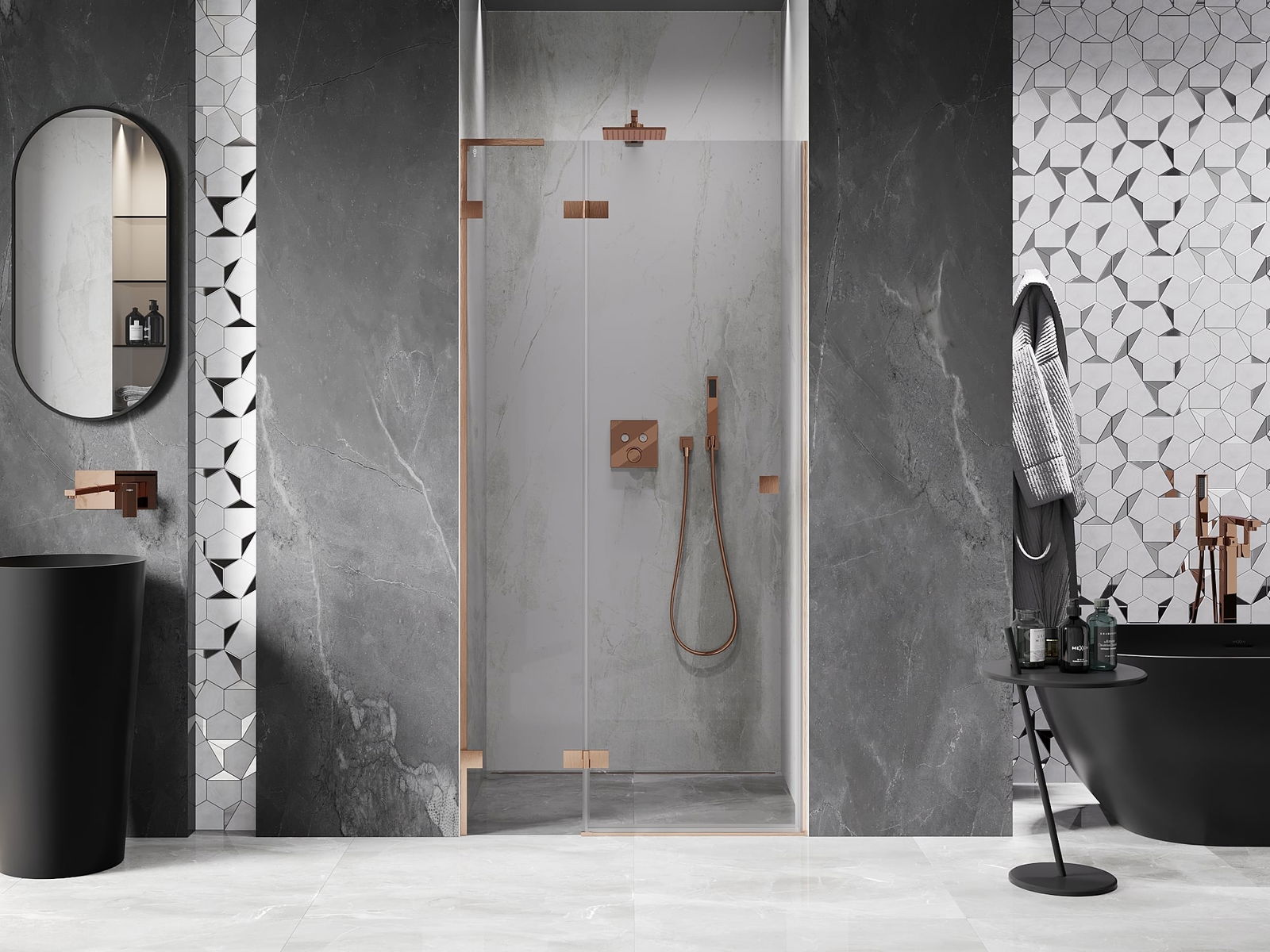 Mexen Lunar L otočné sprchové dveře levé 105 cm, transparentní, kartáčovaná měď - 834L-105-000-65-00-L
