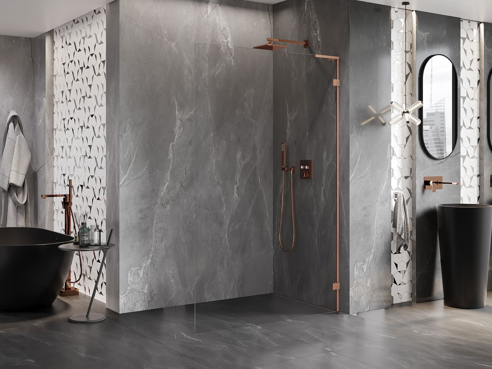 Mexen Lunar L sprchová stěna Walk-in pravá 50 x 200 cm, čiré 8 mm, kartáčovaná měď - 830L-050-000-65-00-P