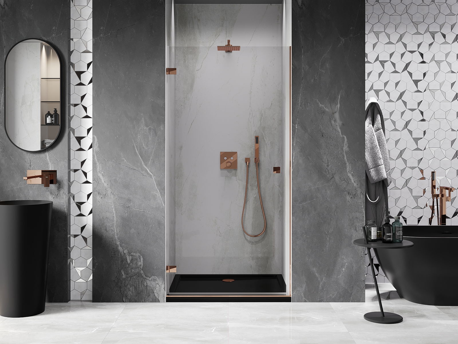 Mexen Lunar-B levé sprchové dveře otočné 75 cm, transparentní, růžové zlato - 832-075-000-60-00-L