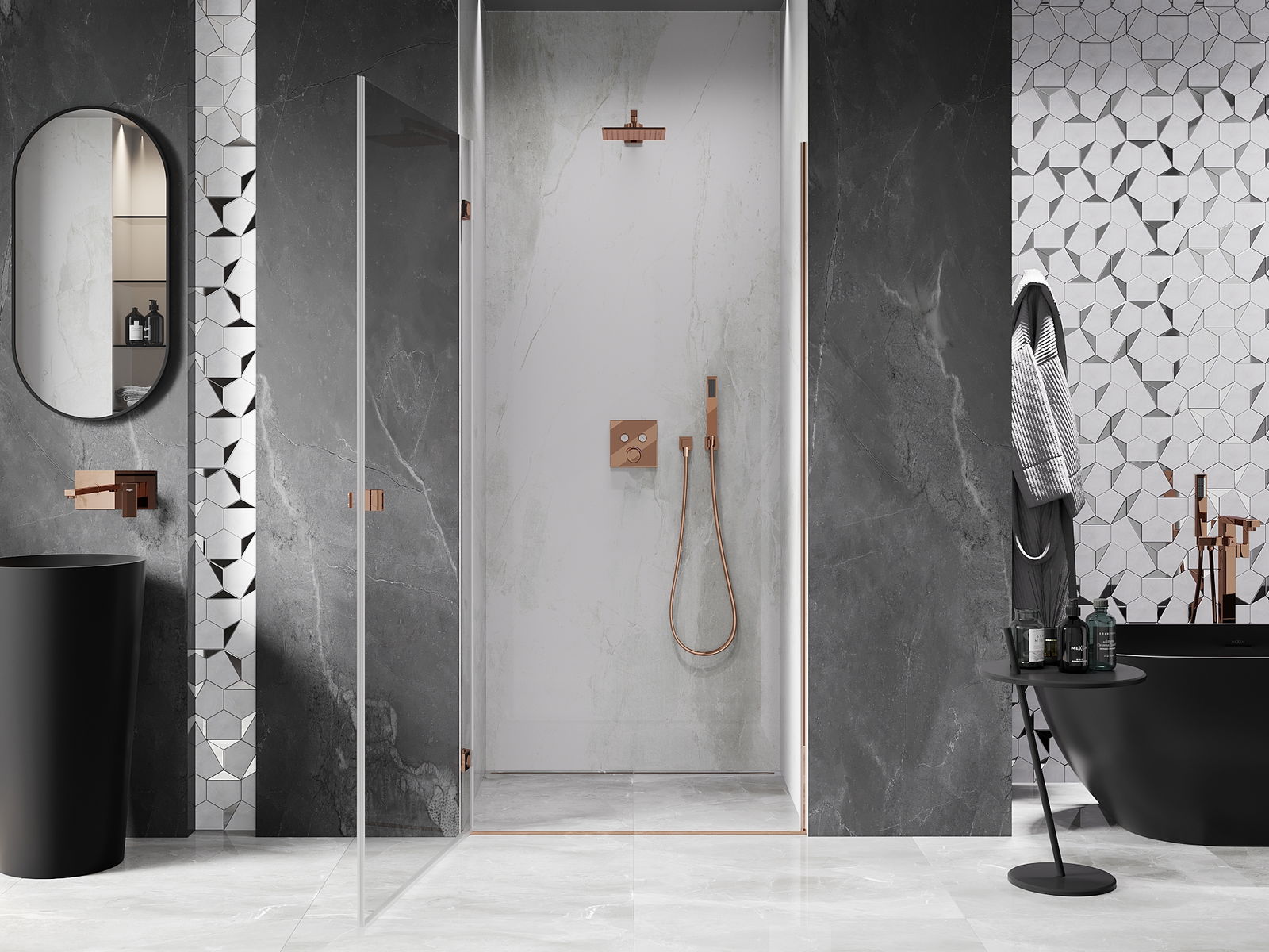 • Mexen Lunar-B sprchové dveře otočné levé 80 cm, transparentní, růžové zlato - 832-080-000-60-00-L