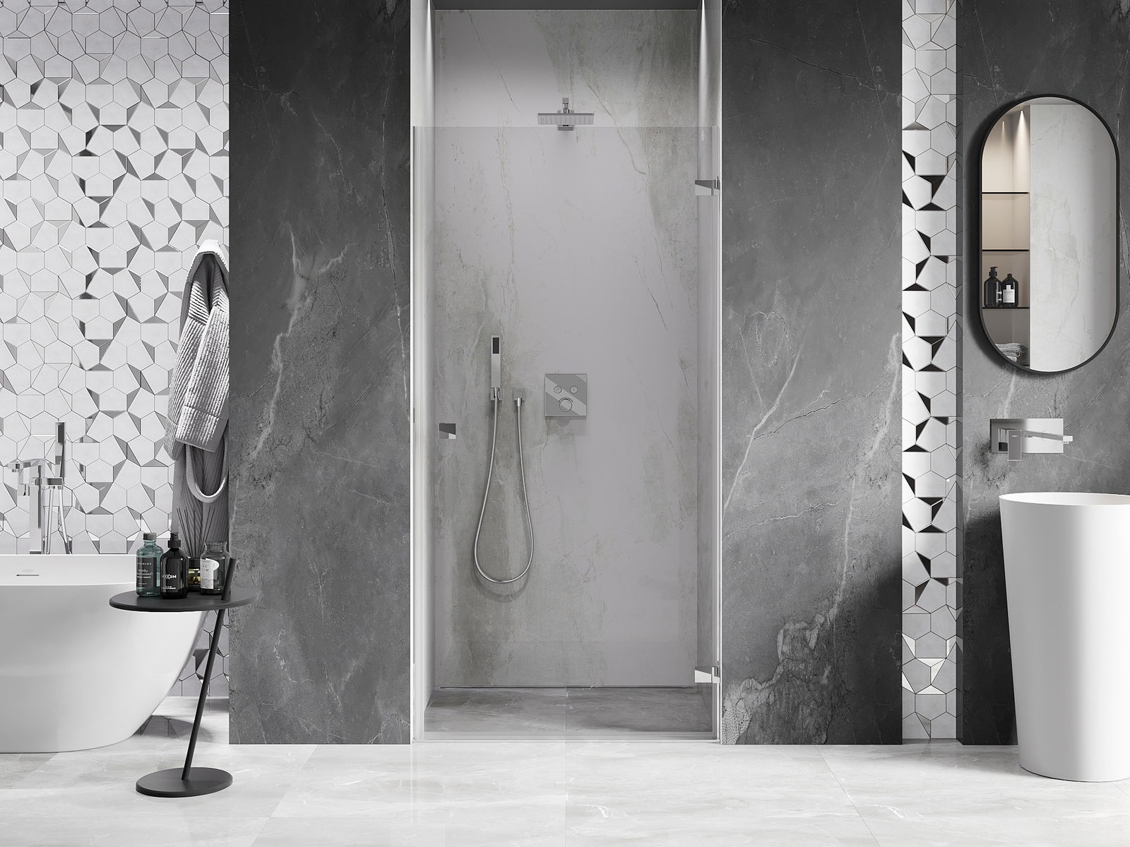 Otevírací dveře umožňují maximální svobodu při používání. Mají pevné panty vyrobené z odolného materiálu, které se snadno čistí a umožňují snadný přístup do interiéru kabiny.