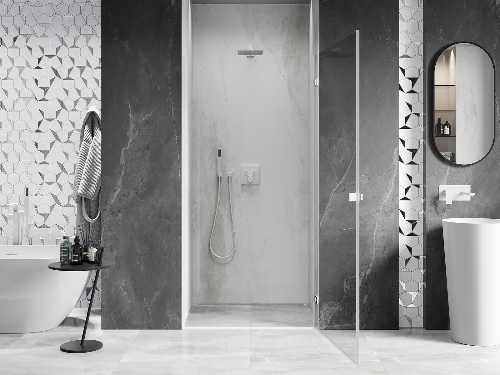 Otevírací dveře umožňují maximální svobodu při používání. Mají pevné panty vyrobené z odolného materiálu, které se snadno čistí a umožňují snadný přístup do interiéru kabiny.