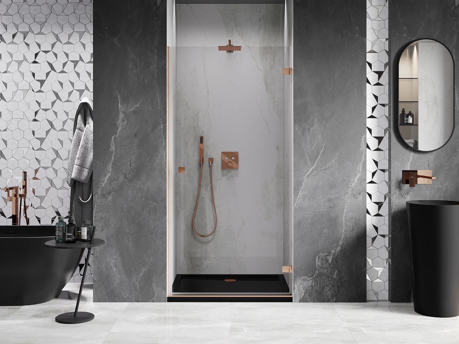 Mexen Lunar-B sprchové dveře otočné pravé 95 cm, transparentní, kartáčovaná měď - 832-095-000-65-00-P