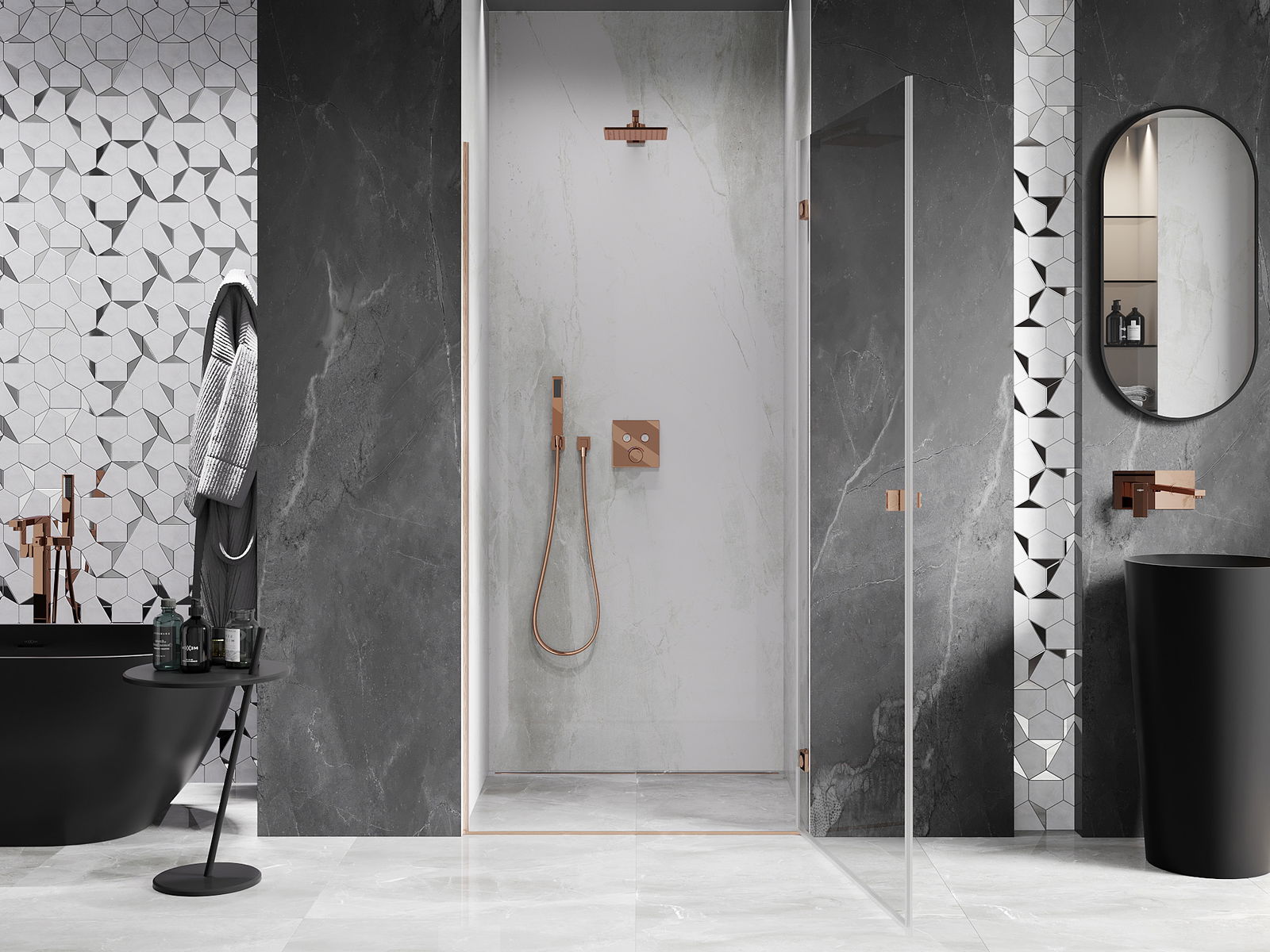 Mexen Lunar-B sprchové dveře otočné pravé 100 cm, transparentní, kartáčovaná měď - 832-100-000-65-00-P
