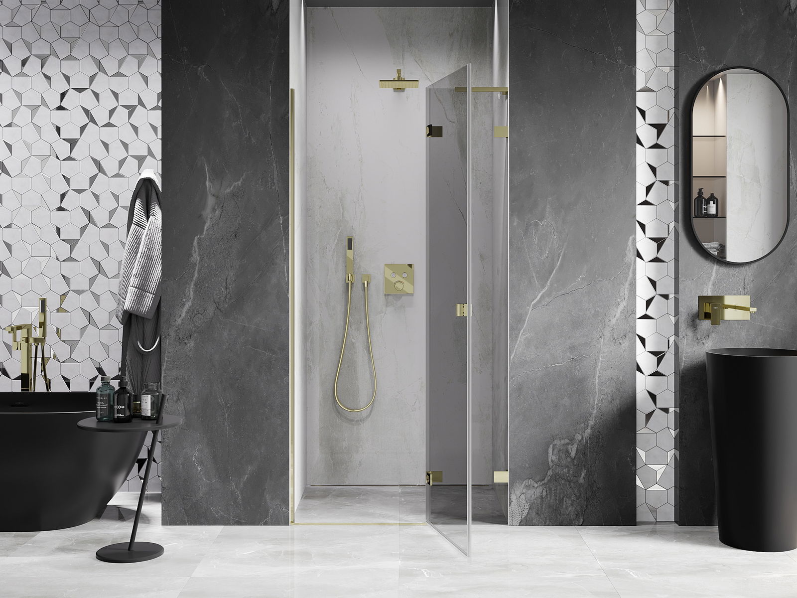 Mexen Lunar L sprchové dveře otočné pravé 120 cm, transparentní, zlaté - 834L-120-000-50-00-P