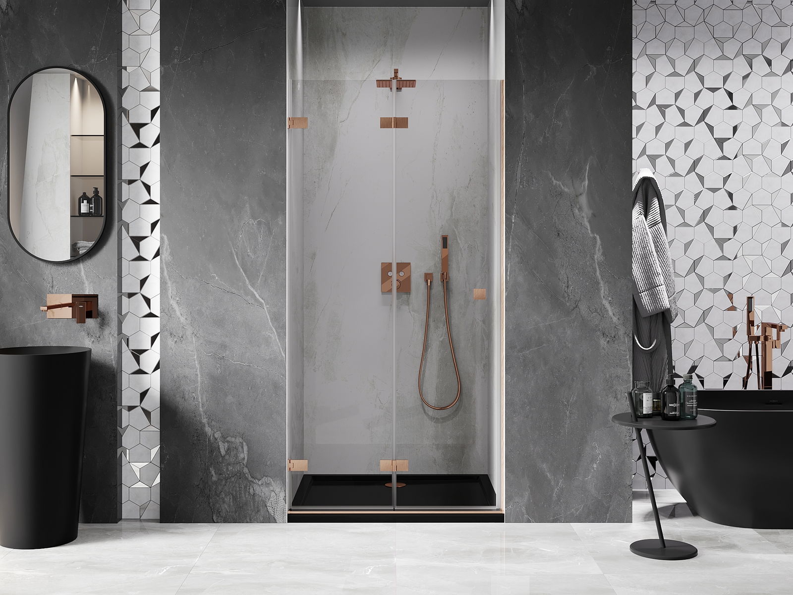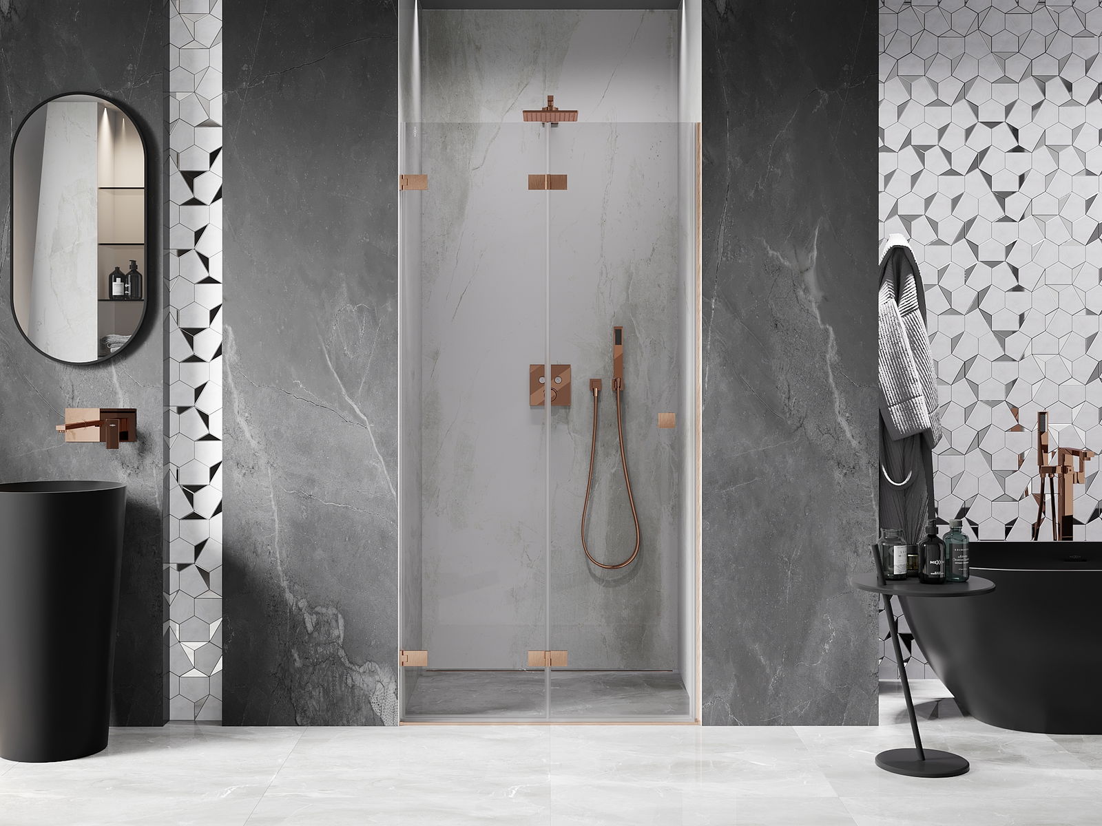 Mexen Lunar-F skládací sprchové dveře levé 80 cm, transparentní, kartáčovaná měď - 836-080-000-65-00-L