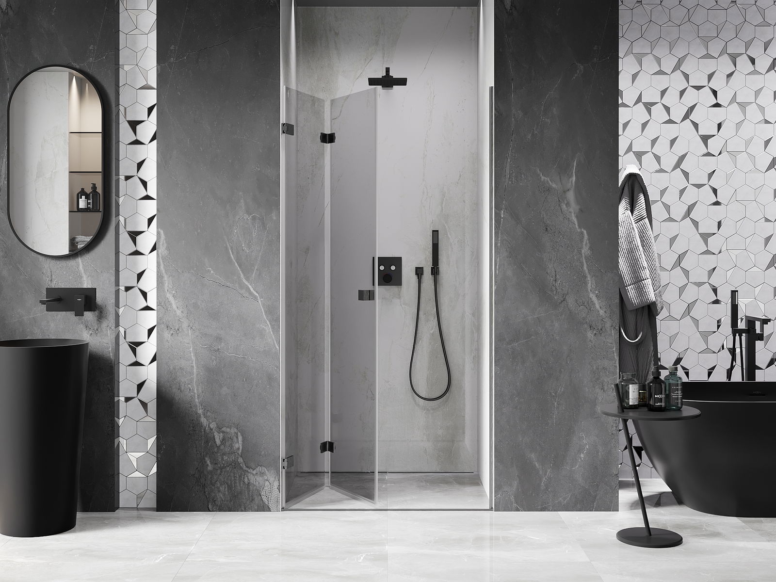 Možnost skládání dveří, jak dovnitř, tak ven, umožňuje získat více prostoru při nepoužívání sprchy. Je to ideální řešení pro menší koupelny, maximálně využívající dostupný prostor.