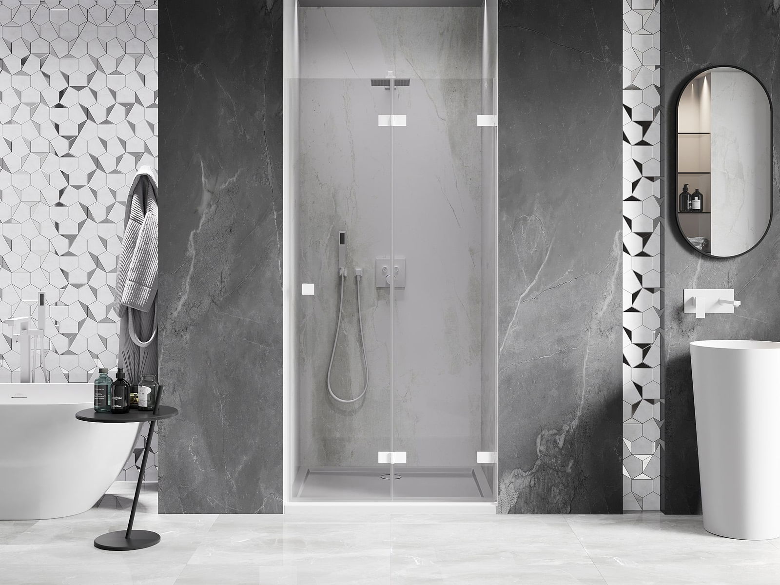 Možnost skládání dveří, jak dovnitř, tak ven, umožňuje získat více prostoru při nepoužívání sprchy. Je to ideální řešení pro menší koupelny, maximálně využívající dostupný prostor.