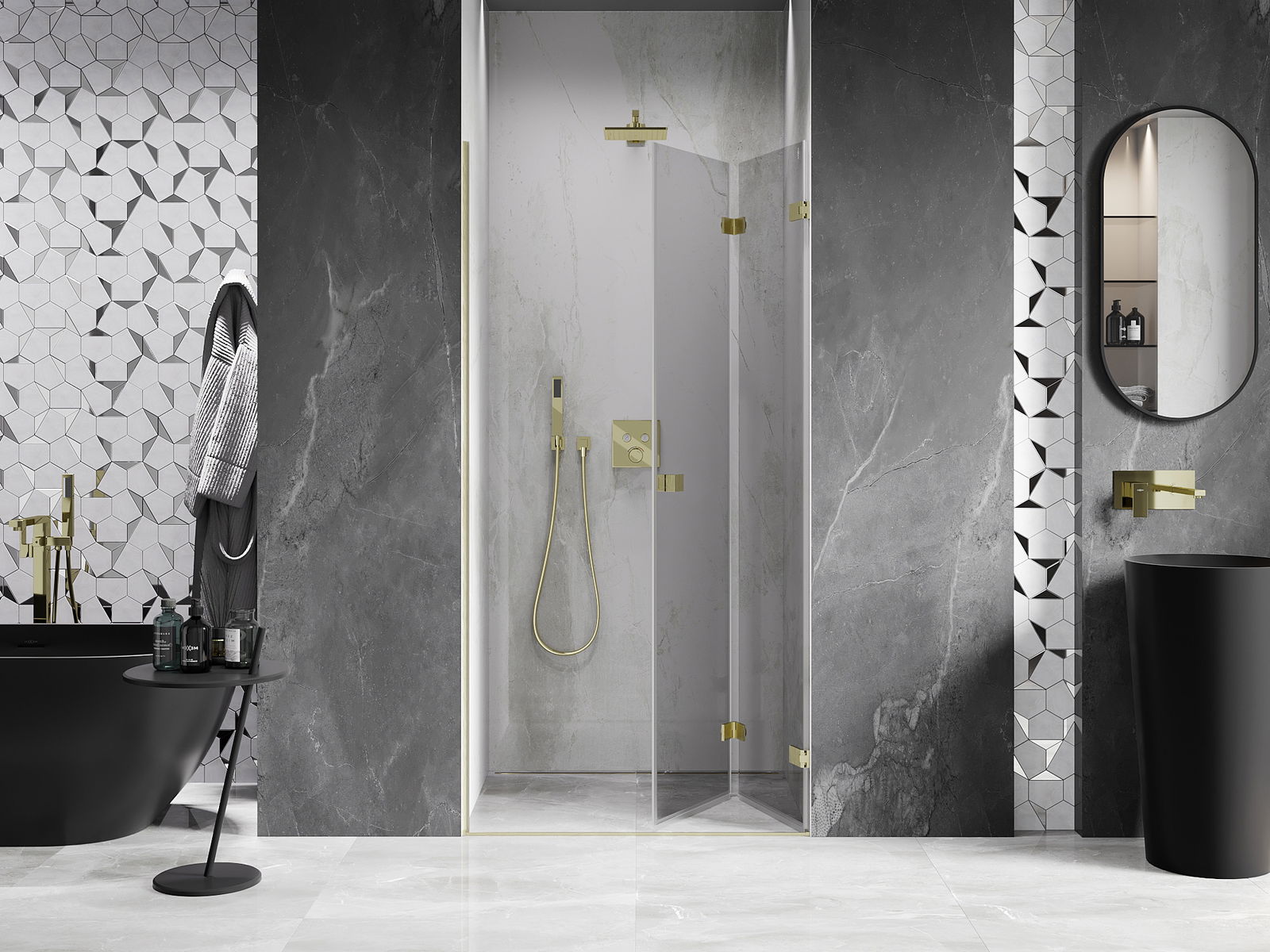 Mexen Lunar-F skládací sprchové dveře pravé 65 cm, transparentní, kartáčované zlato - 836-065-000-55-00-P
