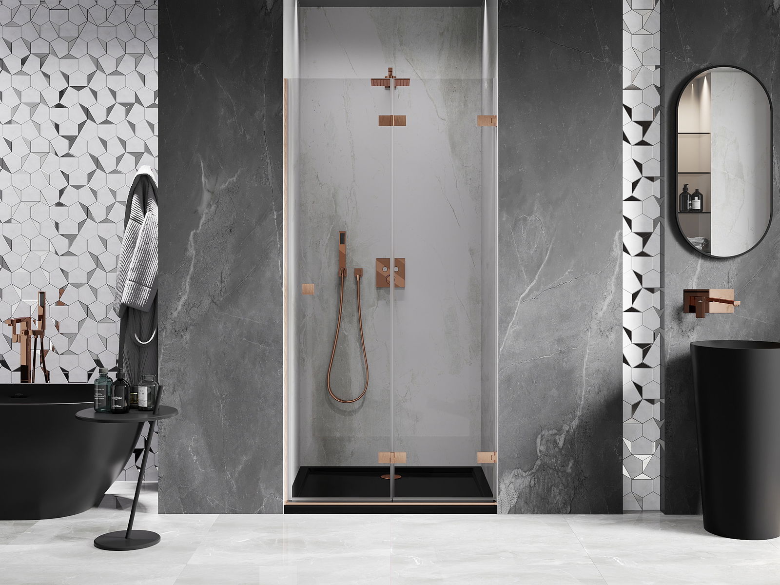 Mexen Lunar-F sprchové dveře skládací pravé 65 cm, průhledné, kartáčovaná měď - 836-065-000-65-00-P