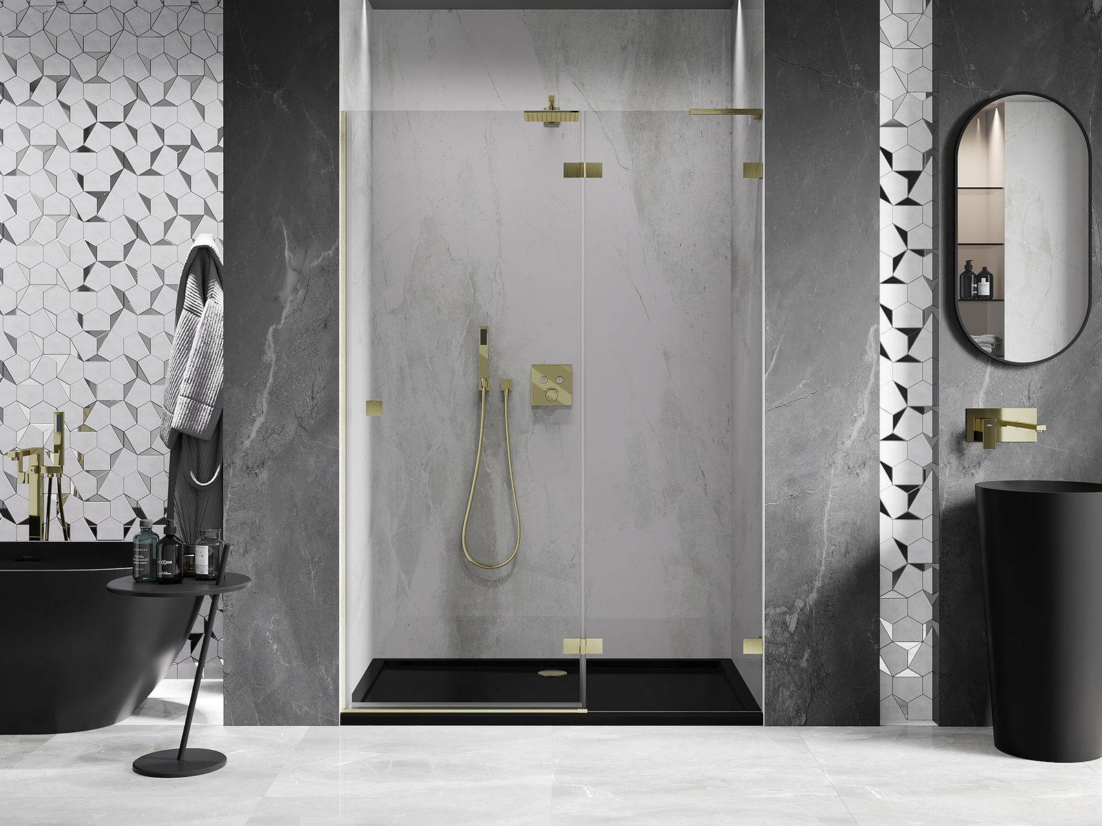 Mexen Lunar L sprchové dveře otočné pravé 135 cm, průhledné, zlaté kartáčované - 834L-135-000-55-00-P
