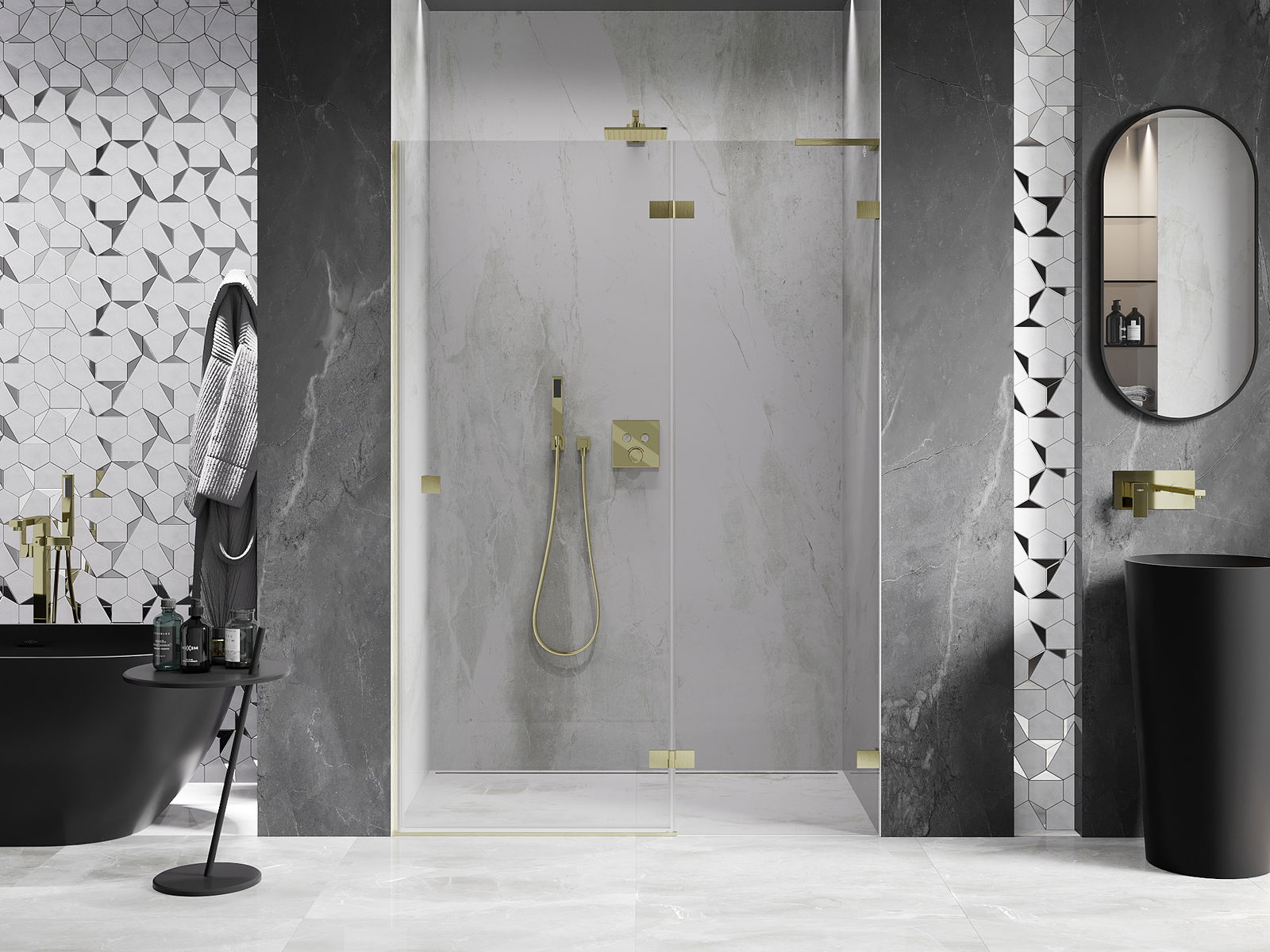 Mexen Lunar L sprchové dveře výklopné pravé 140 cm, transparentní, zlaté kartáčované - 834L-140-000-55-00-P