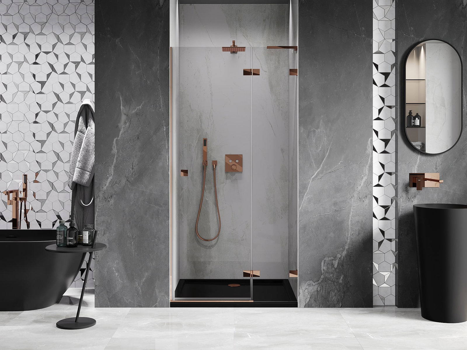 Spony a závěsy byly vyrobeny z velmi odolné mosazi a navíc vytvářejí zarovnanou plochu skla. Je to vynikající volba, která kombinuje eleganci, odolnost a moderní design. Díky těmto řešením získává sprcha na estetice a zároveň usnadňuje udržování čistoty.